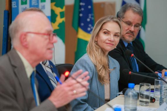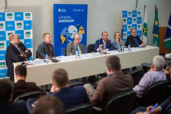 An die Debatte schlossen sich Fragen der Moderatorin, der Journalistin Leila Sterenberg, und des Publikums an. An der Veranstaltung nahmen auch der Direktor der KAS in Brasilien, Maximilian Hedrich, der Professor am Institut für Internationale Beziehungen, Antônio Carlos Lessa, und der Sekretär für Internationale Angelegenheiten der UnB, Gladston Luiz da Silva, teil.