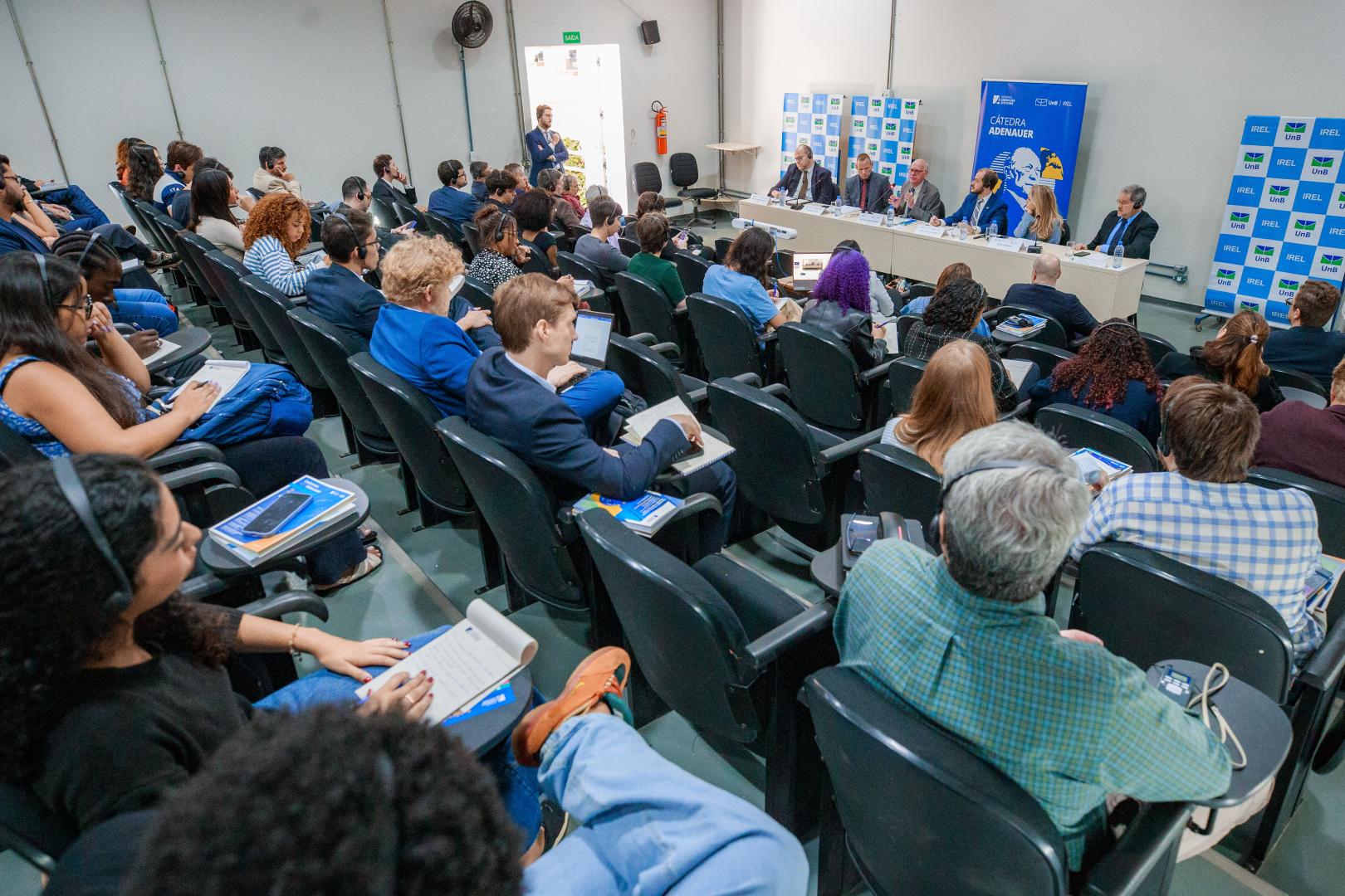 Das Eröffnungsseminar der neuen Cátedra Adenauer fand am 23. Oktober im Auditorium des Instituts für Internationale Beziehungen der Universität Brasília statt. Die Initiative, ein Projekt der Konrad-Adenauer-Stiftung in Brasilien in Zusammenarbeit mit dem Institut, zielt darauf ab, einen akademischen Raum zu schaffen, der sich hauptsächlich mit dem Studium der Internationalen Beziehungen und der Politikwissenschaft befasst, mit besonderem Schwerpunkt auf den Beziehungen zwischen Brasilien und Europa sowie zwischen Brasilien und Deutschland. Die Zusammenarbeit zwischen der KAS Brasilien und der UnB, der ersten brasilianischen Universität, die einen Studiengang für Internationale Beziehungen eingerichtet hat, ist der Beginn einer weiteren soliden und produktiven Partnerschaft für die Arbeit der Stiftung in Brasilien, die sich seit jeher für die Förderung von Demokratie, Rechtsstaatlichkeit und internationalem Dialog einsetzt.