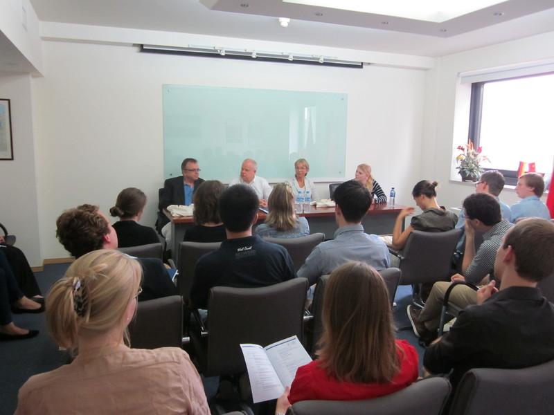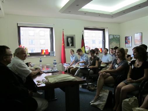 In Peking thematisierten die KAS-Stipendiaten die chinesische und deutsche Wirtschaftspolitik, Herausforderungen des Rechtsstaatsdialogs, interkulturelle Wahrnehmung am Beispiel der Kulturpolitik sowie die Bedeutung von Moral und Ethik in Politik und Zeitgeschehen. Mit chinesischen Studenten diskutierten die Nachwuchswissenschaftler bildungspolitische Fragestellungen, zivilgesellschaftliches Engagement der Bildungselite sowie Fremd- und Selbstwahrnehmung im politischen Kontext.