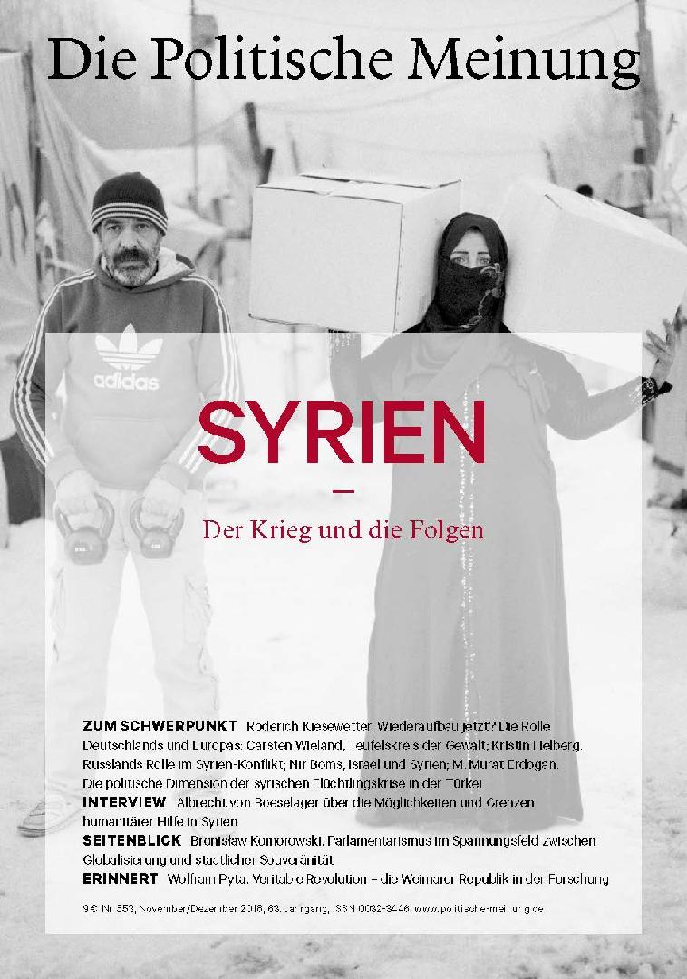 Während die Gemeinsamkeiten im Friedensprojekt der Europäischen Union bröckeln, werden weltweit 222 Konflikte gewaltsam ausgetragen. Besonders die humanitäre Katastrophe in Syrien zeigt, wie ungläubig, apathisch oder hilflos die Reaktionen auf diese kriegerischen Entwicklungen bleiben. Aber längst nicht allein moralische, sondern eisenharte real- und sicherheitspolitische Gründe zwingen dazu, dem Scheuklappendenken zu entsagen. Der innerstaatliche Syrienkrieg ist zu einem regionalen und internationalen Konflikt mit einer unüberschaubaren Zahl von Akteuren und widerstreitenden Interessen eskaliert. Jederzeit könnten sich die Feindseligkeiten zu einem Flächenbrand ausweiten. Die europäischen Länder taumelten nicht zuletzt aus Fatalismus gegenüber der Komplexität damaliger Krisen in den Ersten Weltkrieg. Im heutigen Europa ist eine ähnliche Erschöpfung spürbar, die die neu-autoritären Führer dieser Welt noch dazu mit gezielter Provokation und Eskalation genussvoll für sich ausschlachten. Europa und der Westen sind nicht davor gefeit, ihre Gemeinsamkeit weiter zu schwächen, obwohl letztlich die Glaubwürdigkeit der Vereinten Nationen und aller Mechanismen zur Verhinderung und Beilegung internationaler Konflikte weiterhin von ihr abhängen. Die neue Welt-Unordnung beginnt bei uns und nicht in Syrien, aber Syrien könnte den Ausgangspunkt eines erneuten Totalversagens markieren: „Urkatastrophe“ des 21. Jahrhunderts?