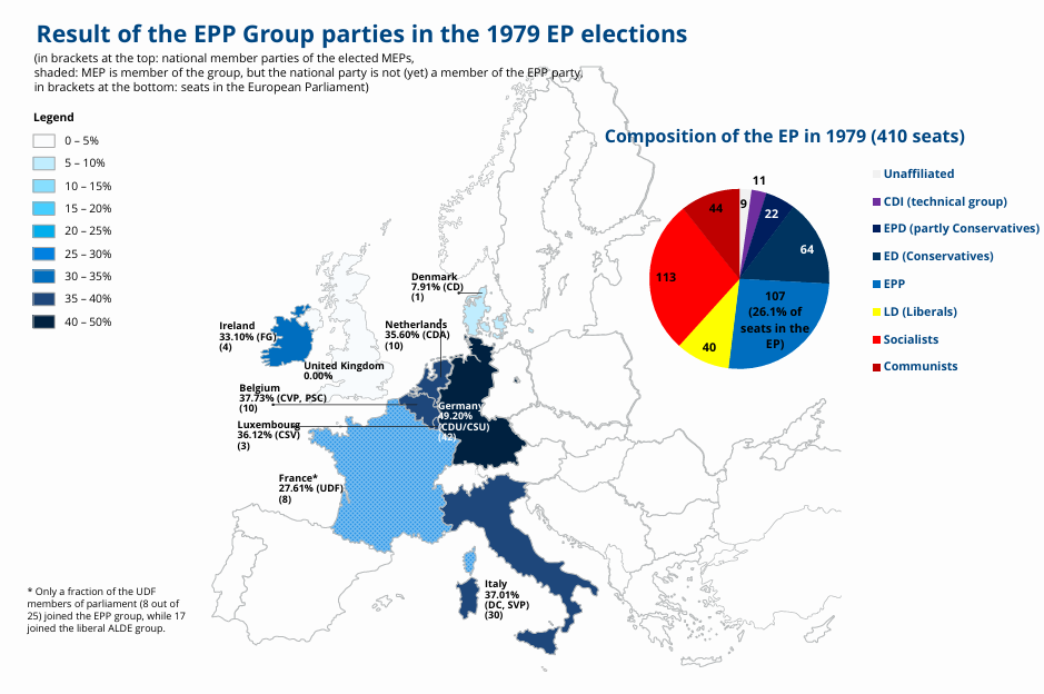This version of the EPP Party Barometer illustrates the performance of the EPP Group in the past European elections since 1979 until 2026.