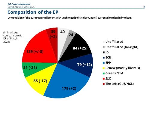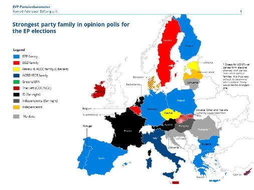 - The EPP family is the strongest political family in the polls in 11 countries, the socialist family S&D in 5 (but only if the currently suspended Slovakian parties Smer and Hlas are included). The far-right ID is ahead in 4 countries, the liberal Renew is ahead in 3, the Left and the Eurosceptic national-conservative ECR are each ahead in one country. Fidesz (not yet part of a party family) was ahead in Hungary and, formally, independent parties were ahead in Latvia.