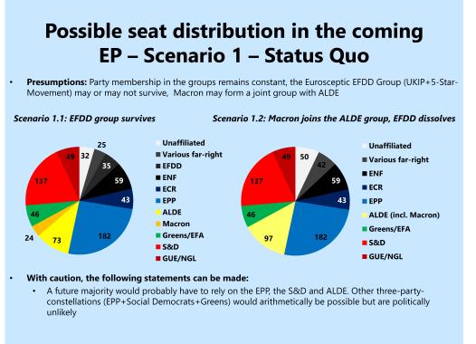 far-right parties manage to unite? Will the 5-Star-Movement form a group on its own?), three different scenarios