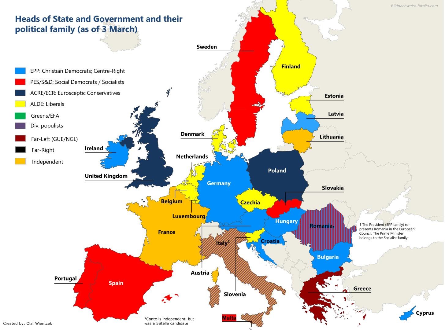 Malta and Cyprus - In the European Council, 9 Heads of State and Government belong to the EPP family, 8 to the