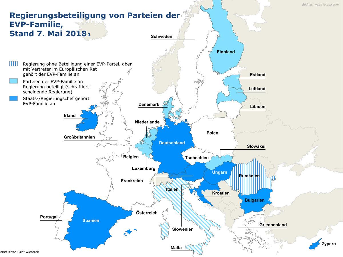 - In einigen Ländern ist die EVP-Parteienfamilie zwar die stärkste politische Familie, stellt aber nicht die stärkste Einzelpartei.