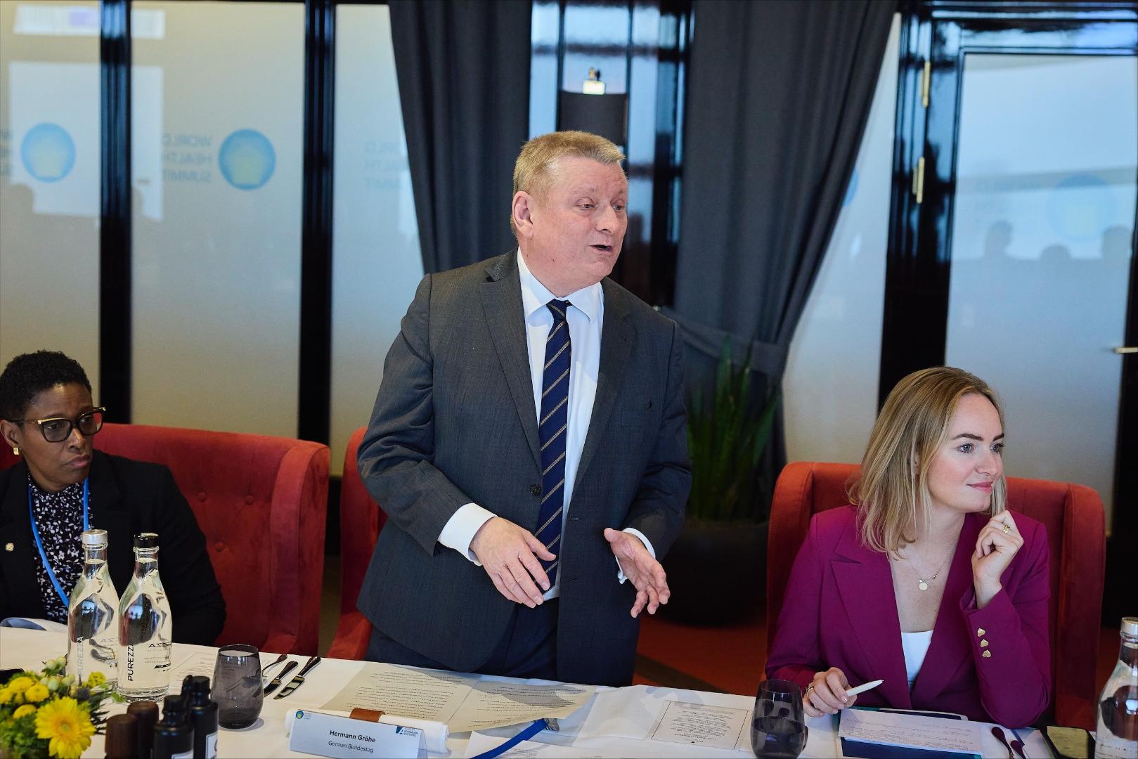 Hermann Gröhe, stellvertretender Vorsitzender der Konrad-Adenauer-Stiftung, eröffnete die Veranstaltung und betonte dabei die transformative Kraft digitaler Technologien und Künstlicher Intelligenz für den Gesundheitssektor. Er unterstrich: „Der rote Faden, der sich durch all unsere Diskussionen zieht, ist die Überzeugung, dass Innovation, Inklusion und Vertrauen, eingebettet in einen klaren politischen Rahmen, entscheidend dafür sind, globale gesundheitliche Ungleichheiten zu überwinden und die Gesundheitsversorgung für alle Menschen zu verbessern.“ Hermann Gröhe wies auf die Chancen hin, die KI in der Diagnostik und Behandlung bietet, insbesondere in ressourcenarmen Regionen. Zugleich hob er die Notwendigkeit ethischer und regulatorischer Rahmenbedingungen hervor, um sicherzustellen, dass diese Technologien verantwortungsvoll und zum Wohle aller eingesetzt werden können.