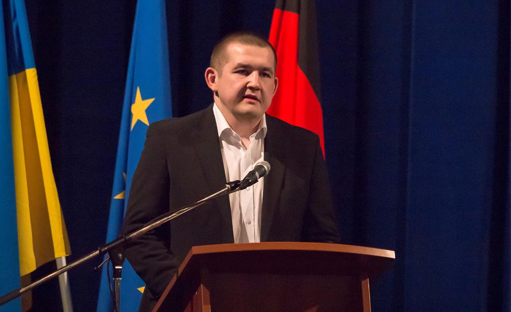 Die Wichtigkeit des gemeinsamen Einsatzes für Demokratie und Menschenrechte unterstrich auch Pavel Lisjanskij, Vertreter der Menschenrechtsbeauftragten des ukrainischen Parlaments für die Gebiete Donezk und Lugansk. Lisjanski, der 2017 den Deutsch-Französischen Preis für Menschenrechte und Rechtsstaatlichkeit erhalten hatte, berichtete davon, wie die Teilnahme an einem Seminar der Stiftung vor vielen Jahren sein Interesse an zivilgesellschaftlichem Engagement geweckt habe. Er richtete sich daher explizit an die anwesenden jungen Leute im Saal, weiter zivilgesellschaftlich aktiv zu sein. Unter ihnen waren auch die ersten ukrainischen Sur-Place-Stipendiaten der Stiftung. Tim B. Peters, Leiter des KAS-Auslandsbüros in Charkiw, erläuterte hierzu, dass mit dem neuen Stipendienprogramm für Studierende an ostukrainischen Hochschulen deren Einsatz und Studienleistungen honoriert werden sollen. Die Bandbreite ihres Engagements reiche von der Korruptionsbekämpfung über die Unterstützung für Binnenflüchtlinge bis hin zum Verfassen von politischen Blogs.
