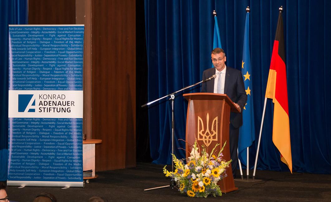 Zuvor hatte die Gouverneurin des Charkiwer Gebiets, Dr. Julia Switlitschna, in ihrem Grußwort die vielfältige deutsch-ukrainische Zusammenarbeit in der Region beschrieben und das große Interesse an der Arbeit der Konrad-Adenauer-Stiftung in der Ostukraine zum Ausdruck gebracht.