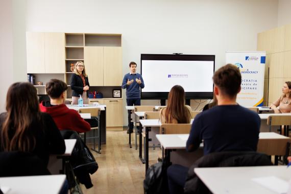 The discussions after the film, held with students from the Republic of Moldova as part of the "Promoters of Democracy. Education through Film" Caravan, are intended to challenge students to become civically involved, to identify problems in their community that they themselves can help solve, and to inform them about the resources available to them.