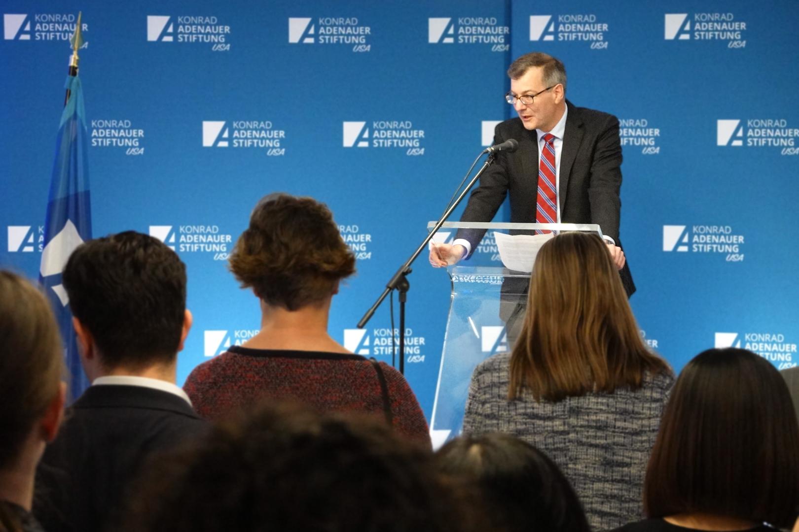 The reception was a joint event organized with the Representative of German Industry and Trade (RGIT) in Washington, DC. More than 100 participants from politics, business, and think tanks gathered at the KAS Office USA to discuss transatlantic challenges and priorities for the year ahead.