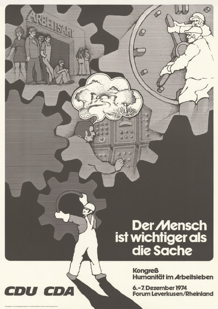 – „Wir erstreben eine Politik, die der Würde des Menschen und seiner Arbeit den Vorrang vor allen anderen Werten und Maßstäben einräumt, denn der Mensch ist wichtiger als die Sache.“