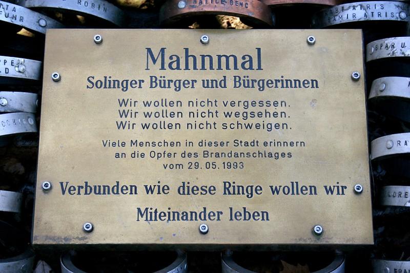 Die Untere Wernerstraße in Solingen, in der das Haus der Familie Genç stand, ist heute ein deutscher Erinnerungsort in negativer Lesart. Niemand kann die Uhr zurückdrehen und die Dinge ungeschehen machen. Es kann nur versucht werden, die Erinnerung in der Gegenwart wach zu halten. Bundespräsident Joachim Gauck konstatiert aus diesem Grund im Jahr 2012: „Es ist die Gegenwart, die unsere Wachsamkeit, unsere Entschlossenheit, unseren Mut und unsere Solidarität braucht.“ Und den rechtsextremen Feinden der Verfassung hält er entgegen: „Euer Hass ist unser Ansporn“ und bezeugt somit, dass der einzige Weg in die Zukunft ein friedfertiges Miteinander auf der Grundlage der demokratisch-freiheitlichen Grundordnung ist.