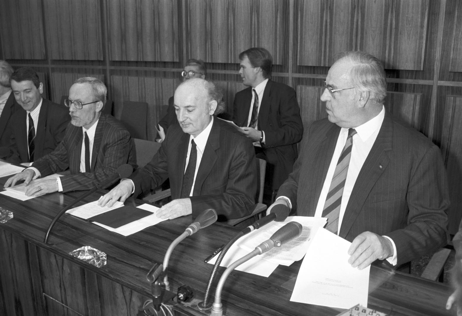 Innerhalb der Union gab es zwei grundsätzlich unterschiedliche Positionen. Der Landesverband Hessen unter Ministerpräsident Walter Wallmann, der bereits im Herbst 1989 erste Kontakte nach Thüringen geknüpft hatte, die West-Berliner CDU und die Exil-CDU sprachen sich eindeutig für eine Kontaktaufnahme mit reformbereiten Kräften in der CDU der DDR aus, die besonders an der Basis immer präsent gewesen seien. Auf ihrer Sitzung am 18. Dezember 1989 stimmte auch die CDU/CSU-Fraktionsvorsitzendenkonferenz einer Kooperation mit der CDU der DDR zu. Generalsekretär Volker Rühe lehnte dagegen jede Form der Zusammenarbeit mit der bisherigen Blockpartei strikt ab, da er längerfristig negative Folgen solcher Kontakte für das Ansehen der CDU befürchtete. Kohl blieb insgesamt ebenfalls zurückhaltend, zumal sich eine weitere Option anbot.