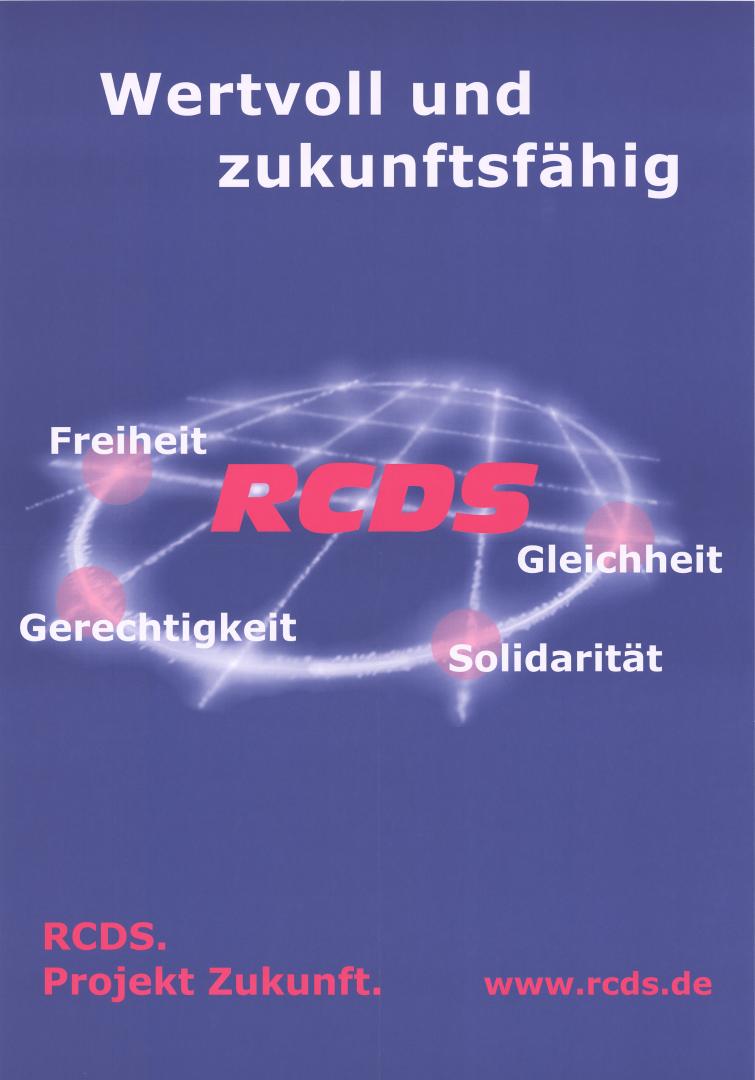 „Im RCDS haben sich demokratische Studenten zusammengeschlossen, um studentische Interessen in Hochschule und Gesellschaft wirksam zu vertreten und politische Konzeptionen zur Gestaltung einer offenen solidarischen Gesellschaft zu entwickeln. [...] Aufgrund der Übereinstimmungen in den wesentlichen politischen Grundwerten ist der Hauptansprechpartner unter den Parteien die CDU bzw. die CSU.“