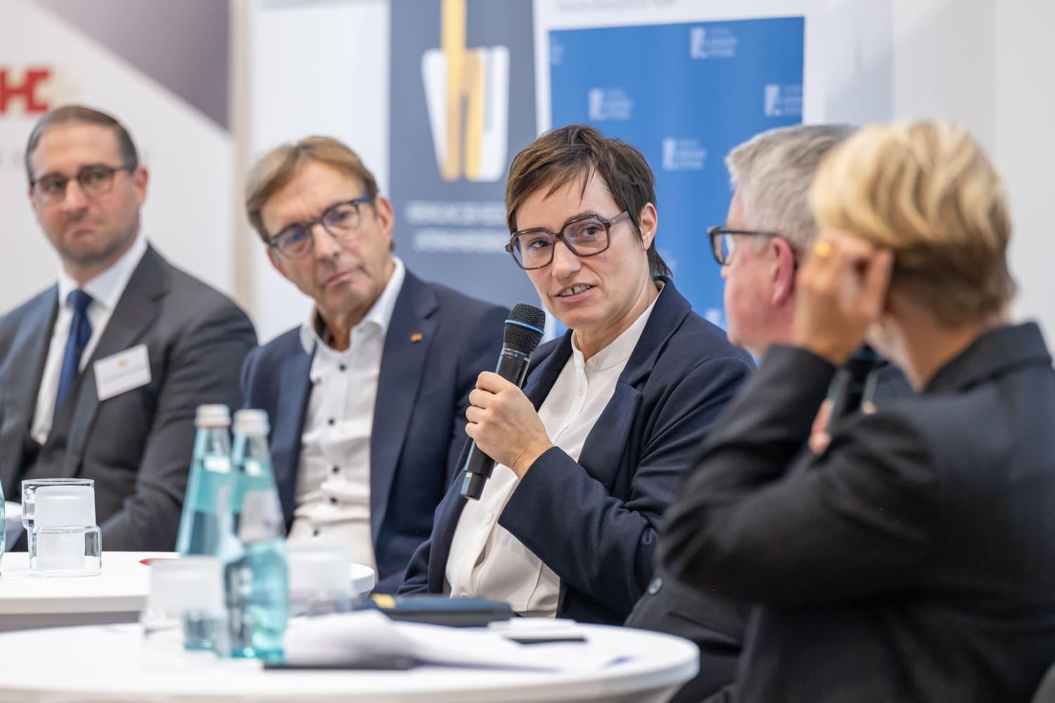 Beim fünften Forum Wirtschaft und Gesellschaft auf dem HessenChemie Campus diskutierten Expertinnen und Experten aus Wirtschaft, Wissenschaft, Politik und Kirche über Resilienz und Wehrfähigkeit Deutschlands. Insbesondere bei der Podiumsdiskussion wurde hervorgehoben, dass Sicherheit nicht nur militärisch, sondern auch gesellschaftlich und ethisch gedacht werden müsse.