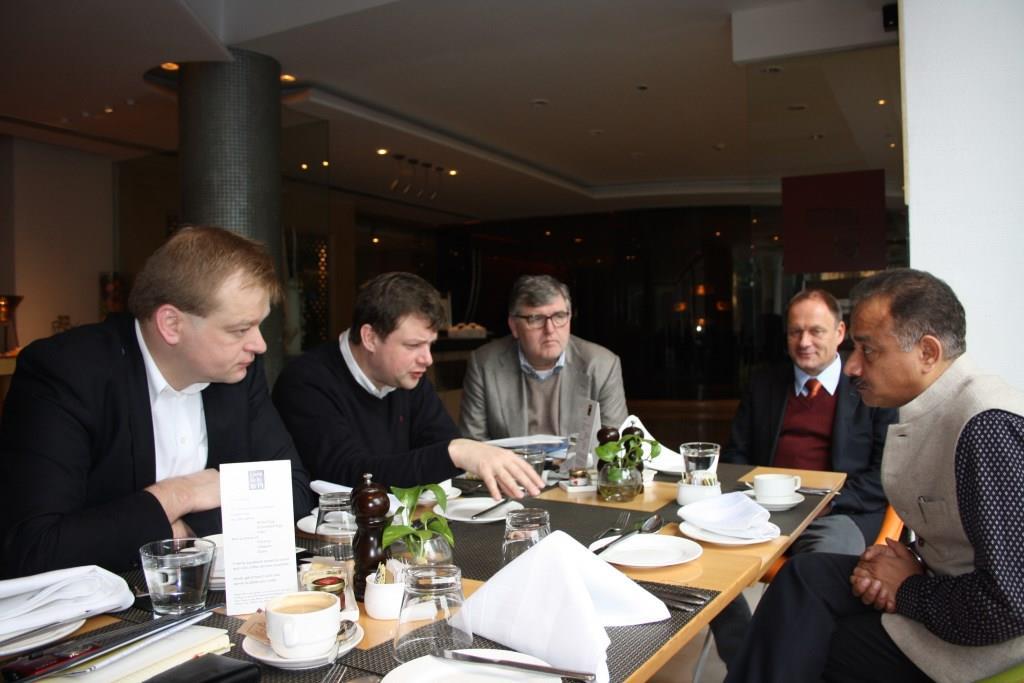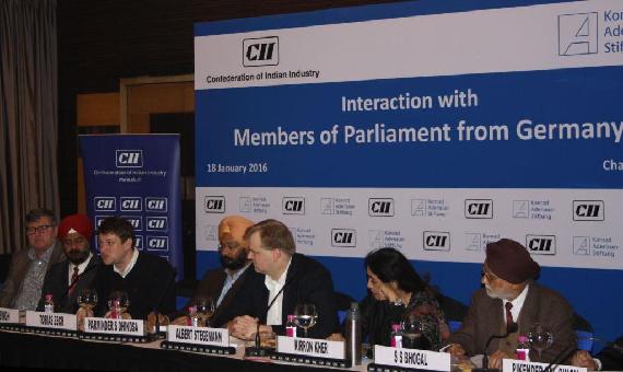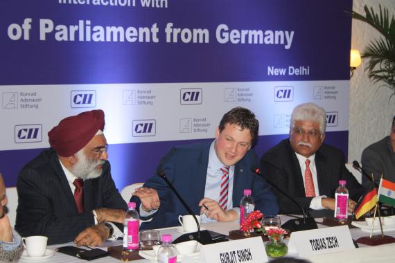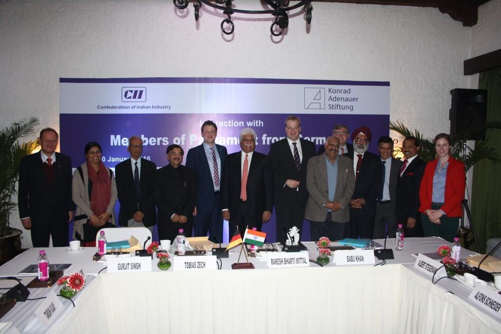 In Delhi, the delegation had meetings with the German Ambassador to India, Dr. Martin Ney, as well as with Bhupender Yadav, General Secretary of the BJP and Member of the Indian Parliament, and with Nalin Kohli, National Spokesperson for the BJP. The results of the three-day programme were evaluated at a joint round table discussion organized by CII, in which the designated Indian Ambassador to Germany, Amb. Gurjit Singh, also participated. Both the Indian and German side have mutually agreed that the already excellent relations between the two countries have great potential to develop further cooperation in the key areas of SME development and vocational training, foreign and security policy, as well as environmental and energy policy. In the wake of the agreements concluded during the third Indo-German governmental consultations in October 2015 it now applies to the federal, provincial and municipal levels to fill them with concrete projects and to implement them.