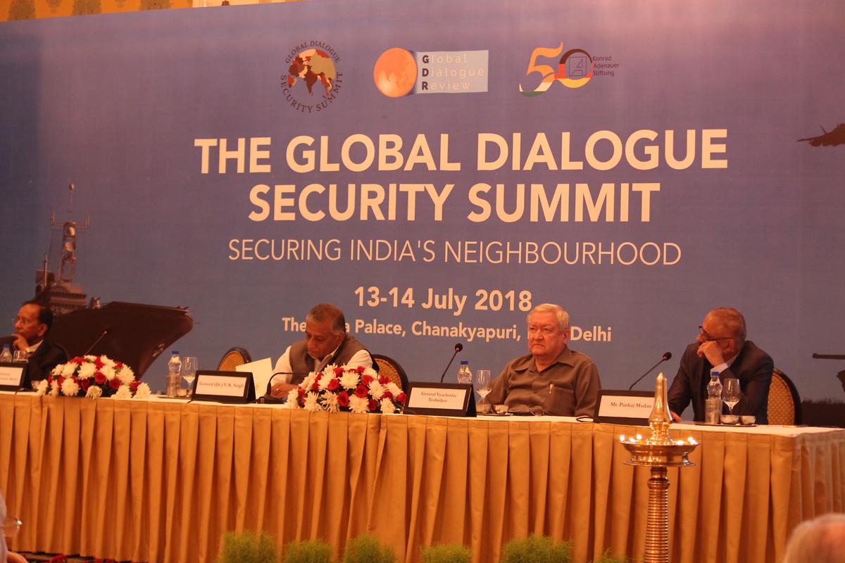 The inaugural session was launched with a welcome address by Mr. Moses Manoharan, Chairman of GDR. Rear Admiral Peter Gumataotao (retd.), Director of the Daniel K. Inouye Asia-Pacific Center for Security Studies (DKI APCSS), emphasized the United States' commitment to security and prosperity in the Indo-Pacific region and stressed that the US would continue to engage for adherence to international law and freedom of navigation. General Vyacheslav Trubnikov, a Director of the Institute of World Economy and International Relations of the Russian Academy of Sciences, insisted that Russia has a major role to play in the strategic conception of the Indo-Pacific. He hoped it would lead to increased trust between the West and Russia. The keynote address by General V. K. Singh (retd.), Minister of State for External Affairs, set the tone for the conference. He sought definition of the Indo-Pacific concept and whether it is focused just on trade and economy or has more of a security aspect. He believed converging ideas on the Indo-Pacific would define India's role in it and its economic and strategic facets. Mr. Pankaj Madan, Deputy Head of the India Office of KAS, spoke of China looming in the international arena and the need to consider its intentions. He underlined the risk of long term projections, especially in light of the changes in the policies of the US and the UK's imminent exit from the EU.