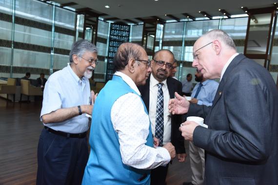 The second session of the seminar was on “Economic and Trade Challenges in the Indo-Pacific”, chaired by Dr. Arvind Virmani. Dr. Surjit Bhalla gave a presentation on “India’s Economy – Steady and Upwards”. He argued that the Indian economy is in a much better shape than is believed by economists and analysts across the world. He substantiated his arguments using data on international trade share, investment shares and GDP growth rates over time. Mr. Pramit Pal Chaudhuri subsequently took the floor to give his views on the current trade policy of the U.S., how it fits into and affects the Indo-Pacific region, what this means for India, and why China is nervous. The Trump administration, with its more mercantile views, has dropped Obama-era politics and is now focusing on tariffs and using them as a lever against China. Looking at China, he noted that the government was rather nervous about the trade war. For the Chinese, it is quite clear that they would be disadvantaged, since significantly more is exported to the US, as imported into China. Ultimately, there is uncertainty in the Chinese economy, because an end to the trade war is not foreseeable. India, on the other hand, would largely support Trump's policy towards China.
