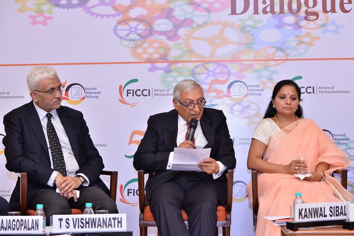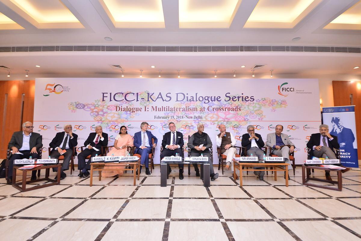 In brief statements, the invited experts commented on the current status and future of multilateralism. Mr. C. Raja Mohan, director of Carnegie India, was less optimistic than the previous speakers. He emphasized that multilateralism was currently in trouble and warned about too high expectations. Also Dr. Ajay Chhibber, FICCI's Chief Economic Advisor, was skeptical because of the rise of China. China would create its own institutions to undermine the existing multilateral system and would seek a bipolar world order. According to Mr. Siddharth Varadarajan, founder and editor of the news website "The Wire", the world community is at a dangerous point. The growing rivalry of the major powers and the current instability of the world order demand pragmatic solutions, and India would be well advised in this situation not to choose one or the other side. Ms. K. Kavitha, Member of the Indian Parliament, pointed out that the emergence of regional plurilateral and bilateral groupings is a direct consequence of the failure of multilateral institutions to adequately solve existing problems. Therefore, the multilateral institutions would have to reform and adapt their structures in order to solve the current problems effectively. The former foreign secretary Ambassador Kanwal Sibal emphasized that the UN has been unable to act effectively as the structure of the organization was inadequate. First, the problem is that states like the US act on the premise that they seek multilateral solutions only if that would be in accordance with its national interests. On the other hand, the UN has not managed to find a mutual stance on topics such as terrorism. Mr. T. S. Viswanath, an expert in WTO affairs, warned about the increasing protectionism and called for the WTO to be seen not merely as an institution facilitating market access but also as a political project for enhancing the cooperation between states. Prof. Rajesh Rajagopalan, School of International Studies at Jawaharlal Nehru University, pointed out that multilateralism is currently facing more and more problems than ever before. This probably due to the fact that the difference in comparison to the Cold War is that the power balance between the US and China is significantly lower than it was between the United States and the Soviet Union during the Cold War.