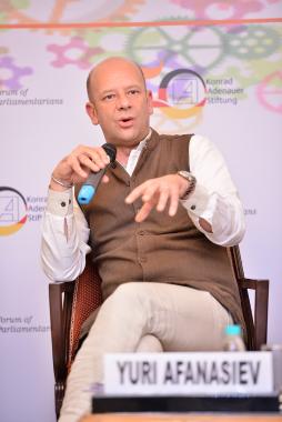 At the beginning of the event, Yuri Afanasiev, UN Resident Coordinator and UNDP Resident Representative in India, and Jasper Wieck, Deputy Chief of Mission of the German Embassy in India, explained how they assess the current situation and future of multilateralism and its institutions. Mr. Afanasiev explained that the world order is currently undergoing changes that would have started 10 years ago but have only come to light in the last 3 years. While uncertainty prevails at the present, he assessed the future of multilateralism optimistically. The current consensus on the reform of multilateral organizations was hard to arrive at, but it could be realized in about 10 years or so from now on. "International cooperation is the key to achieving our development priorities as nations and as a planet." This is reflected, among other things, in the adoption of the Sustainable Development Goals (SDGs). Referring to India, he emphasized that he was impressed by India's dynamic engagement and referred to India's involvement in various UN institutions and support for the Paris Climate Agreement: "Countries like India will shape the contours of multilateralism in the 21st century." Jasper Wieck emphasized that not only multilateralism is currently under stress, but that it is constantly challenged. Nevertheless, it is able to adapt to the challenges occurring. Transparency, inclusiveness and ownership give legitimacy to multilateral structures, institutions and decision-making. He emphasized that in multilateral institutions it is often difficult to reach a compromise between the different interests of the states, but at the end this is always worth the effort. He described the current global power shifts and digitization as the biggest challenges. He was optimistic that the current efforts to meet these challenges can be successful. "In this process, India and Germany can make a difference together, be it in international trade and investment relations or in the area of cooperative security."