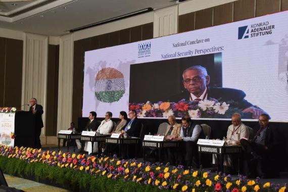 The esteemed speakers at the conclave were M. K. Narayanan, Former Governor of West Bengal and National Security Advisor of India (NSA), Ms. Kavitha D Chitturi, Jt. Managing Director, KCP Ltd and the immediate past president of MMA, Lt. General V R Raghavan, (Retd) PVSM UYSM, AVSM, Military Strategic Thinker and Former Director General of Military Operations Indian Army, Dr. Sridhar Krishnaswami, Professor of Journalism, Prof. Varun Sahni, Vice Chancellor, Goa University along with KAS representatives Mr. Peter Rimmele and Mr. Pankaj Madan.