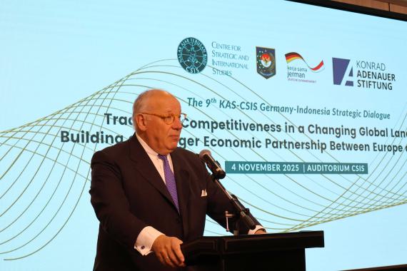 Under the theme “Trade and Competitiveness in a Changing Global Landscape: Building a Stronger Economic Partnership Between Europe and Indonesia”, the 9th KAS–CSIS German–Indonesian Strategic Dialogue was held in Jakarta on 4 November 2025. This annually convened dialogue serves as a central forum for strategic exchange between Germany, Europe, and Indonesia on geopolitical and geoeconomic developments. The focus of this year’s discussions was how the economic partnership could be further deepened in the face of profound global disruptions in trade and international supply chains.