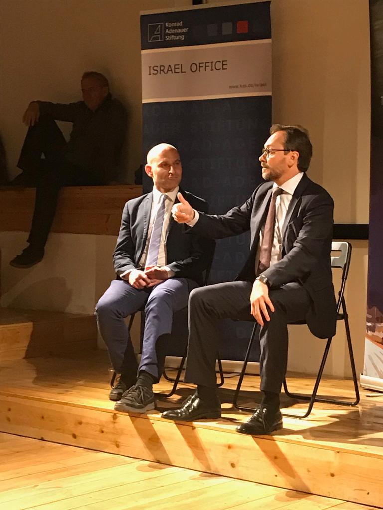 The questions from academic and journalist, Owen Alterman and the audience ranked from topics such as rising antisemitism in Europe to the European reaction to the latest events at the Gaza border. Giaufret responded that the EU will always have solidarity with Israel in the armed conflict against Hamas. At the same time he emphasized that the EU needs to take action against the worsening humanitarian situation of civilians in the Gaza strip. He also discussed his deep worries on the growing antisemitism in many European countries and said that the governments of the member states as well as the European Union as a super national institution have to act against it. Antisemitism can be confronted by educating people about the history and forms of antisemitism, providing state protection for Jewish infrastructure across Europe and fighting the spread of antisemitism online.
