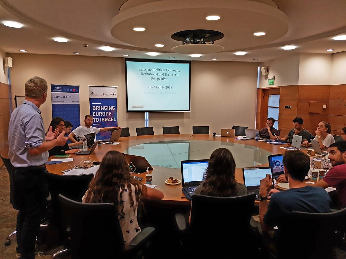 On the second day we learned about the EU’s legislative process. We spoke about the difficulties in finding consensus, and the com-promise process the member states go through. We learned about the roles of the EU’s Commission and Parliament with regards to legislation, the effects of the EU’s enlargement process on legislation and more. We’ve had a very interesting conversation with Prof. Koenig about what it is like being a political scientist after the degree, and thanked him for coming to Israel just so that we could learn things from an unfamiliar perspective.