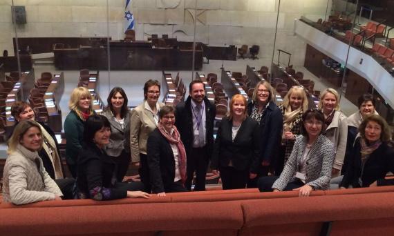 Anschließend wurde die Gruppe in der Knesset von MK Touma-Suleiman (Vereinigte Arabische Liste) und MK Ksenia Svetlova (Zionistische Union) empfangen. Die arabisch-israelische Abgeordnete Aida Touma-Suleiman, welche seit Anfang 2015 dem parlamentarischen Komitee für Frauenstatus und Genderfragen vorsteht, bemängelte, zwar sei das israelische Rechtssystem in Hinblick auf die Gleichstellung von Frauen und Männern weit fortgeschritten, in der Realität schlage sich dies jedoch nur bedingt nieder. So seien nur rund ein Viertel der Knesset-Abgeordneten weiblich. Zudem seien vor allem arabische Frauen in puncto Einkommen meist im Hintertreffen, sowohl gegenüber arabischen Männern, als auch gegenüber jüdischen Israelinnen. MK Ksenia Svetlova, welche 1991 aus Russland nach Ísrael immigrierte, ging unter anderem auf das brandaktuelle Thema der Flüchtlingskrise ein. Das Einwanderungsland Israel habe im Laufe seiner Geschichte Millionen von Migranten erfolgreich integrieren können. Dies sei jedoch nicht ohne verpflichtenden Erwerb von Sprach-, Geschichts- und Traditionskenntnissen möglich gewesen. Im Hinblick auf den schwelenden Konflikt zwischen Israelis und Palästinensern äußerte sie sich kritisch gegenüber der politischen Führung: Unter der regierenden Koalition sehe sie die Chancen für ein Vorankommen des Nahost-Friedensprozesses sehr gering, so Svetlova.