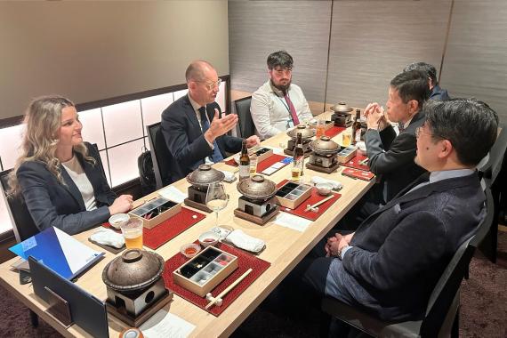 In a cross-party briefing with members of the Japanese Parliament, Dr. Gerhard Wahlers provided an update on the current security situation in Europe and recent defense policy decisions in Germany. The program also included a visit to the Yokosuka naval base to gain insights into the structure and operations of the U.S. 7th Fleet and the Enforcement Coordination Cell (ECC), which is supported by 12 partner nations, including Germany. In addition, working dinners were held with Ambassador Petra Sigmund, Ambassador Ryo Nakamura from the Japanese Ministry of Foreign Affairs, leading Japanese scholars, journalists, and several German economic experts based in Tokyo.