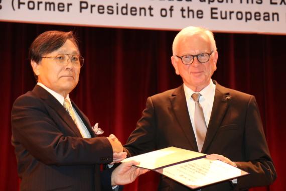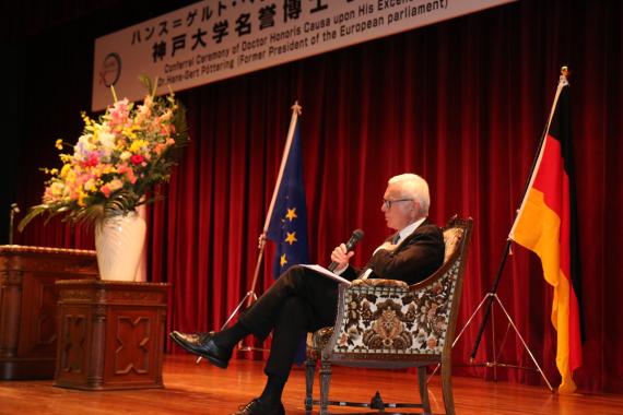 In seiner Dankesrede machte er auf die Notwendigkeit einer zunehmenden und nachhaltigen europäischen Integration aufmerksam. Nur so könne eine zukünftige stabile und allen voran friedliche internationale Staatenordnung garantiert werden. Dazu gehören sich kontinuierlich vertiefende diplomatische und wirtschaftliche Beziehungen zwischen der Europäischen Union und Japan.