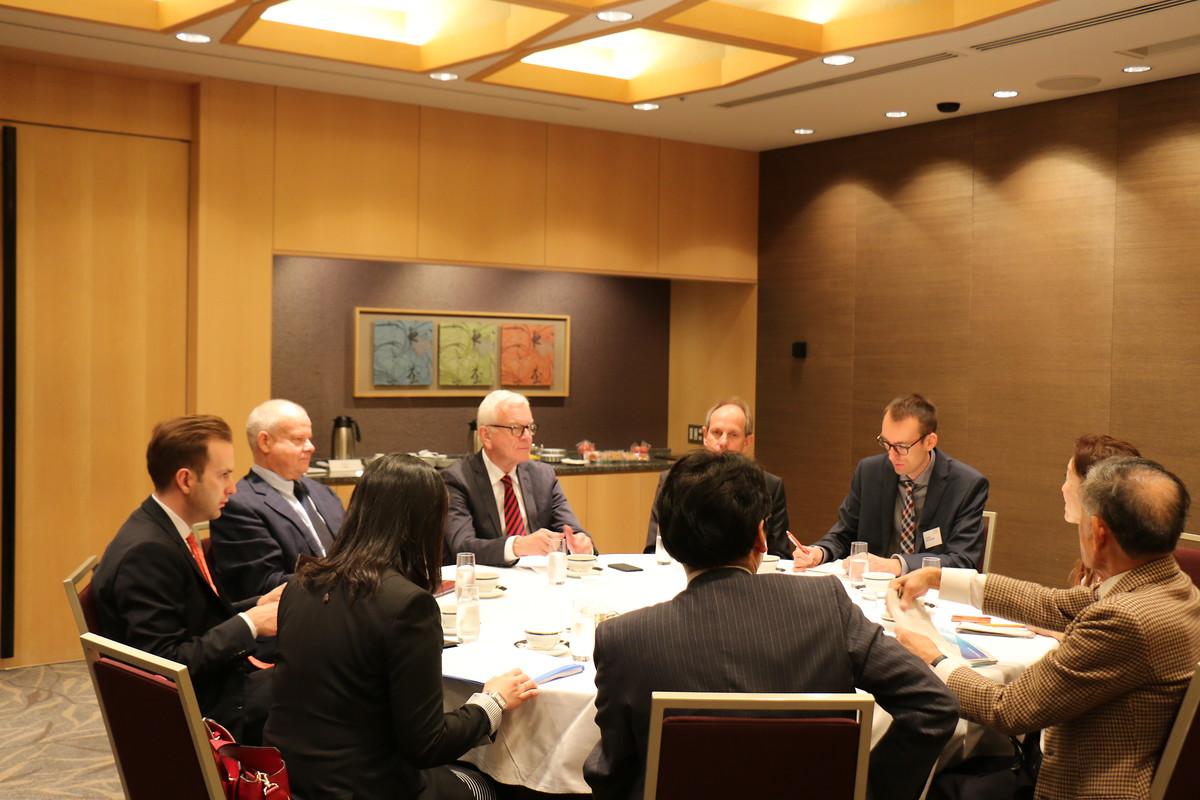 Zusätzlich nutze Dr. Pöttering seinen Aufenthalt, um sich im Rahmen eines politischen Hintergrundgesprächs mit japanischen und deutschen Experten über die aktuelle politische Lage im Asien-Pazifik-Raum auszutauschen. Im Fokus standen sicherheitspolitische Aspekte, Prognosen über Tendenzen in den japanisch-europäischen Beziehungen, sowie demographische Entwicklungen und die bevorstehenden Parlamentswahlen in Japan. Dr. Pöttering betonte vor allem die Bedeutung diplomatischer Konfliktlösungen hinsichtlich der aktuellen politischen Situation mit und um Nordkorea. Der demnächst stattfindende 19. Parteitag der KP Chinas wurde ebenfalls als signifikanter Einschnitt im politischen Machtgefüge der Region diskutiert. Abschließend standen Möglichkeiten gemeinsamer Entwicklungshilfe in afrikanischen Ländern zur Debatte, die in Zukunft enorm an Relevanz hinzugewinnen werden.
