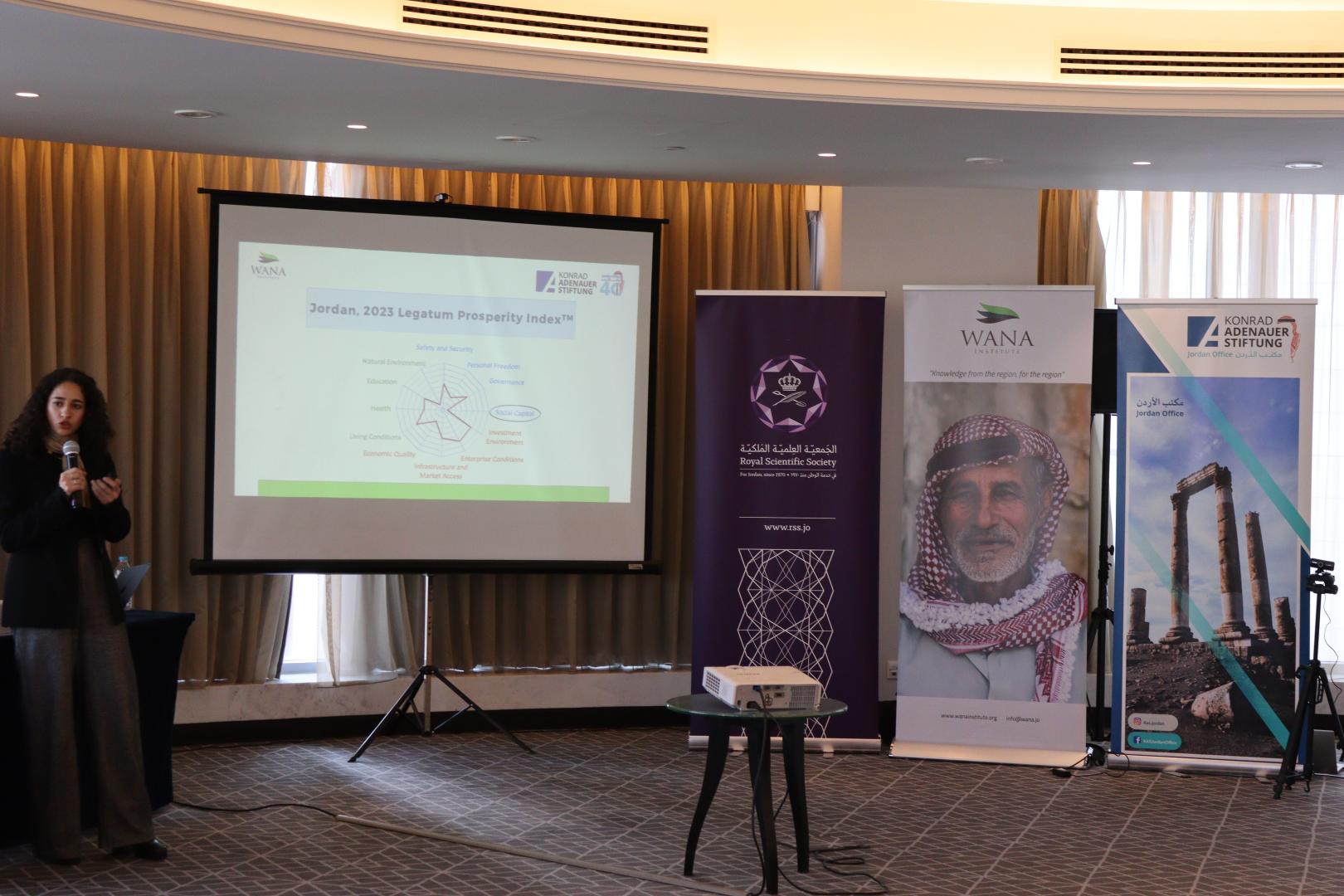 The event was opened by Dr. Majd Al Naber, Director General of the WANA Institute, and Veronika Ertl, Resident Representative of KAS Jordan. Both highlighted the importance of evidence-based policy advice and emphasized the relevance of the research findings presented for the country’s future strategic development planning.