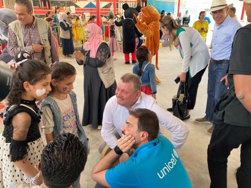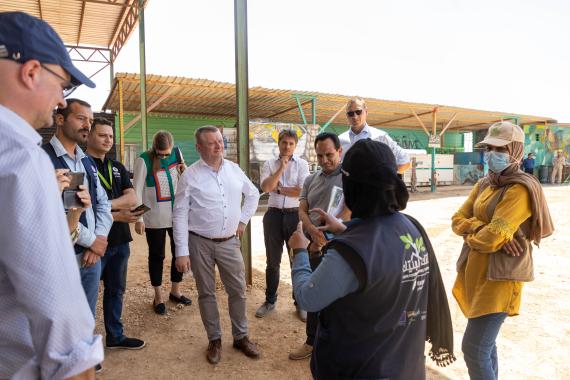 Den zweiten Schwerpunkt der Reise bildete der Besuch im Flüchtlingslager Zaatari, das mit über 80.000 Flüchtlingen aus Syrien das weltweit größte ist. „Es hat mich sehr bewegt, mit Kindern – darunter mit vielen Mädchen – zu sprechen, die im Flüchtlingslager geboren wurden und denen hier mit Bildung, Freizeitgestaltung und einer dem Kinderschutz dienenden Stärkung des Selbstbewusstseins geholfen wird“, würdigte Gröhe das Engagement der jordanischen und internationalen Hilfsorganisationen. Deutschland ist im Bereich Entwicklungshilfe nach den USA der zweitgrößte bilaterale Geber für Jordanien und unterstützt das Land maßgeblich bei der Bewältigung der Herausforderungen, die durch die Aufnahme über einer Million syrischer Flüchtlinge entstehen. Der stellvertretende Vorsitzende der CDU/CSU-Fraktion im Deutschen Bundestag besuchte mehrere Projekte im Lager, die mit deutscher Entwicklungshilfe finanziert werden, darunter einen Kinder- und Jugendclub, eine Abfallsortier-Station sowie eine vor Kurzem fertiggestellte Solaranalage, welche die Stromversorgung im Lager spürbar verbessert hat.