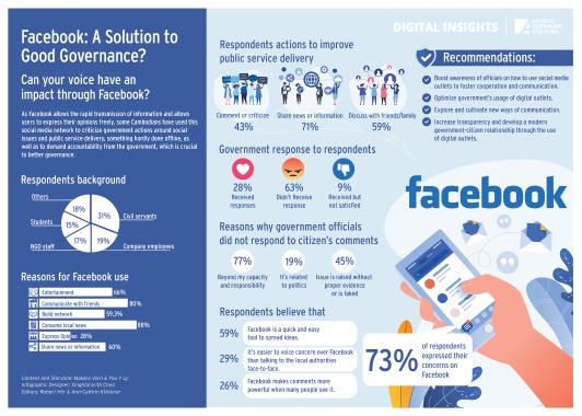 In addition to reviewing global literature and recent cases in Cambodia, this study is complemented by an online survey conducted first-hand on Cambodian Facebook users. This enables researchers to gather raw data about the way Cambodians use Facebook as a medium to demand better governance and also explores how the Cambodian government officials solicit users’ requests or criticisms.