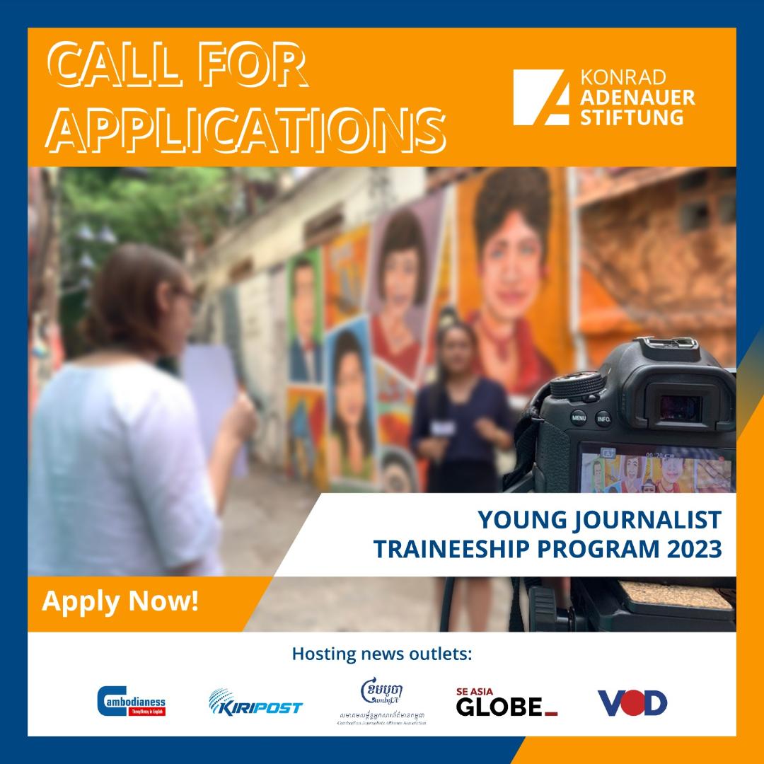 Please submit your application in one PDF file with a title “Application for KAS Young Journalist Traineeship 2023” to Mr. Phan Soumy, Media & Journalism Program Manager, at Soumy.phan@kas.de.