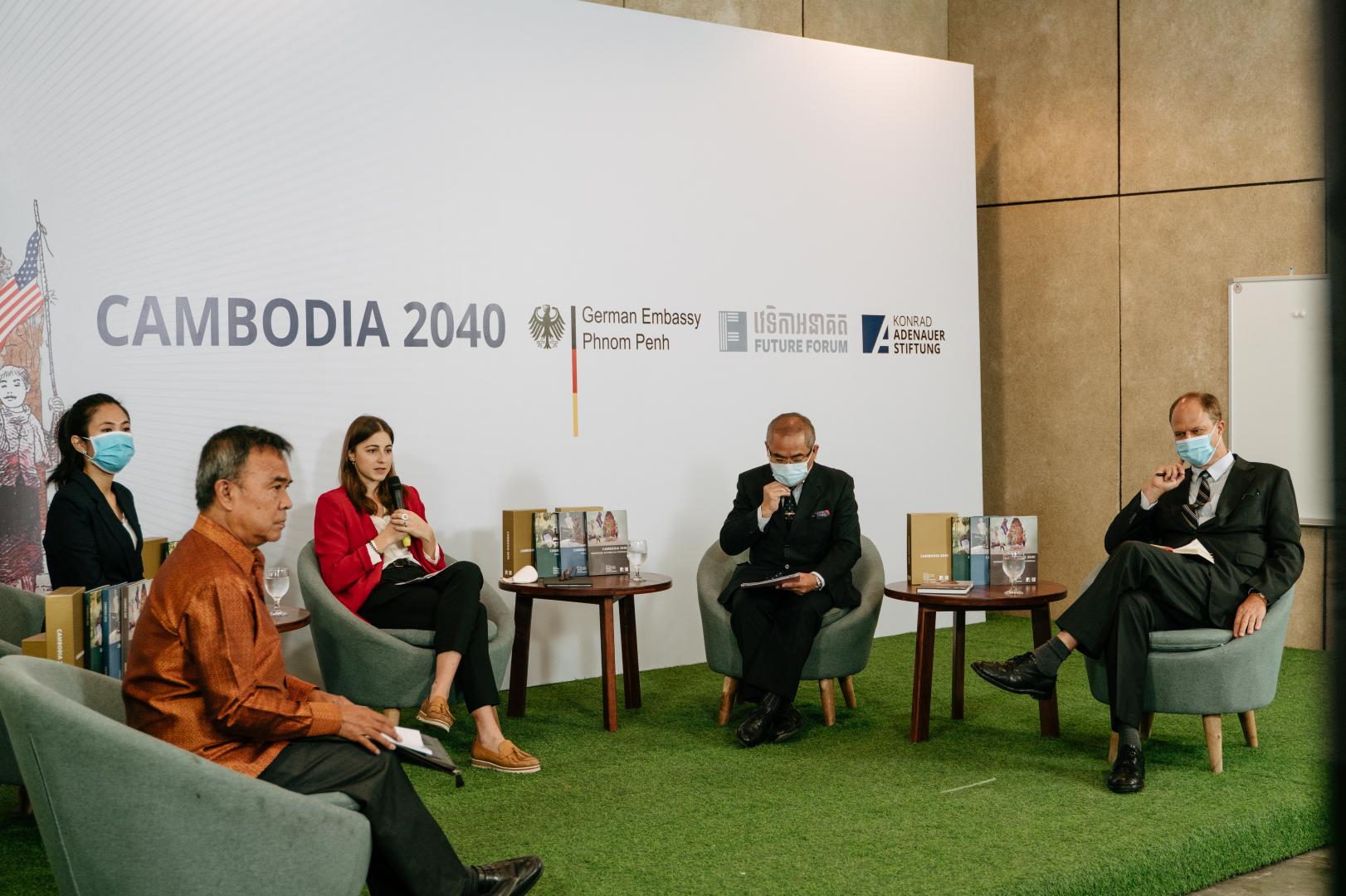 On January 22, 2020, Future Forum and KAS Cambodia launched the first volume of the Cambodia 2040 series at Raffle Hotel Le Royal in Phnom Penh. The program of the launch consisted of the official book launch, the panel discussion and a networking reception. A panel discussion was conducted fruitfully with the participations of Frank Steffel, member of the German Bundestag, Mr. Chean Sithykun, a former senior economist at the Ministry of Economy and Finance, Mr. Ou Virak, president of Future Forum and H.E. Dr. Leewood Phu, advisor to the Royal Government of Cambodia, as panelists.
