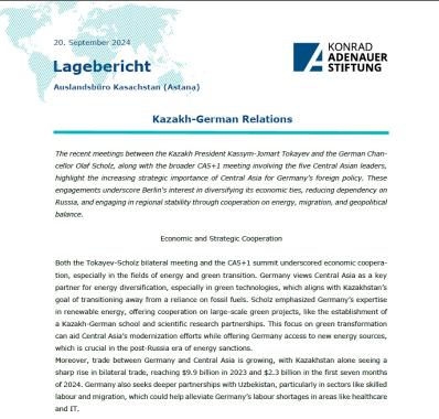Lagebericht Kazakh-German Relations. Besuch des Bundeskanzlers in Kasachstan.