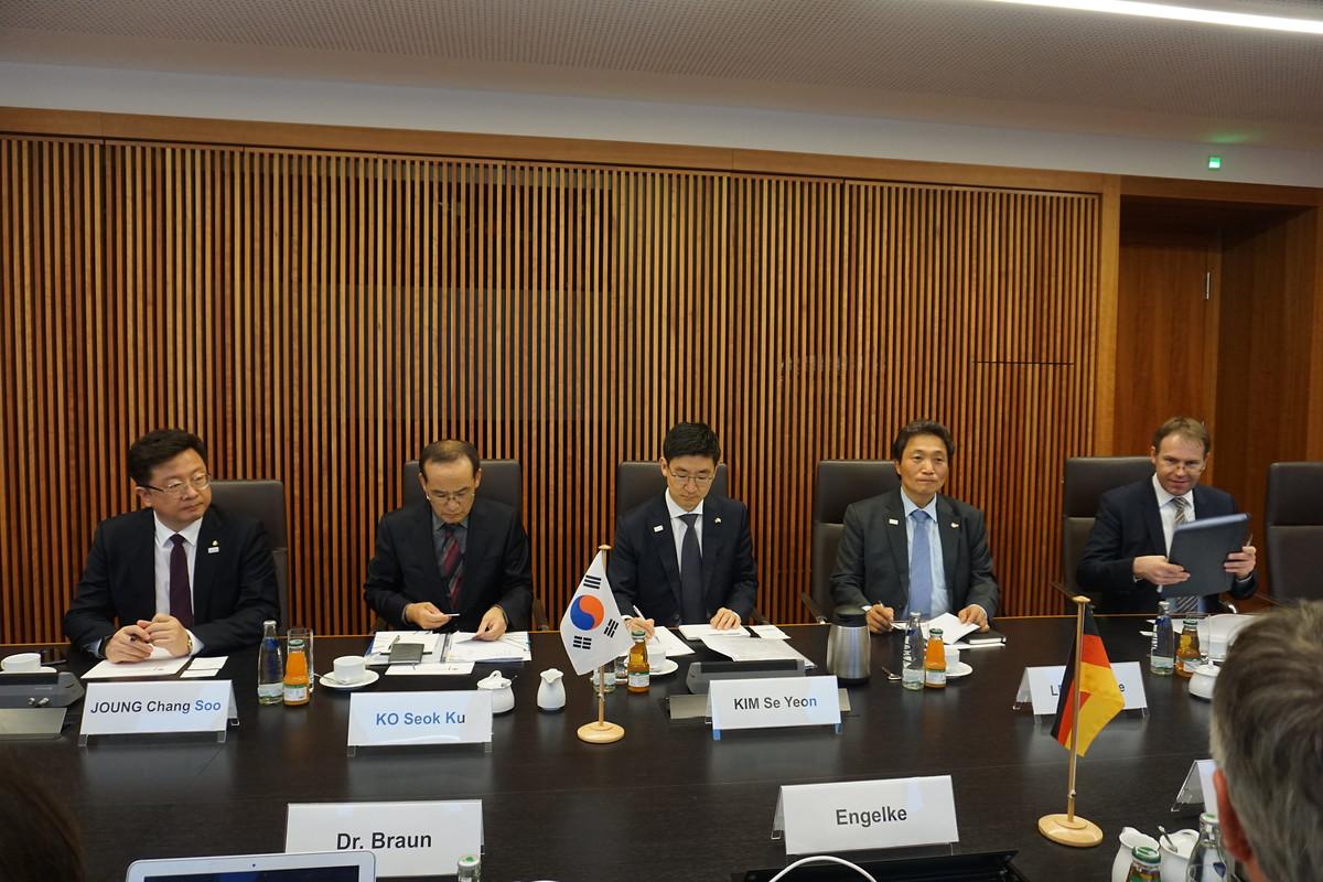 Des Weiteren besuchte die Delegation im Rahmen dieses Studien- und Dialogprogramms das Bundesministerium des Innern (BMI). Frau Dr. Jutta Braun, Leiterin des Zentrums für deutsche Sportgeschichte, hielt eine Präsentation über Sportförderung und konkrete Beispiele deutscher Sportpolitik. Ein Höhepunkt war der Erfahrungsaustausch mit Abg. Herr Kim Se Yeon, der die Delegation auf koreanischer Seite leitet. Er gab einen Einblick insbesondere in die angespannte Sicherheitslage auf der koreanischen Halbinsel.