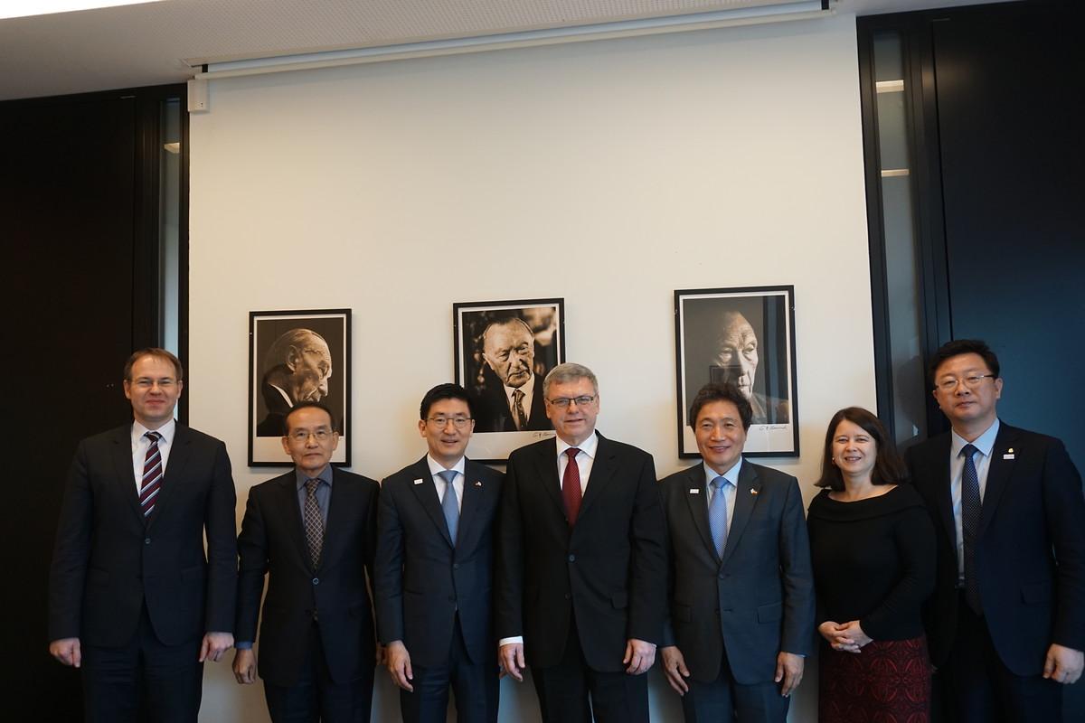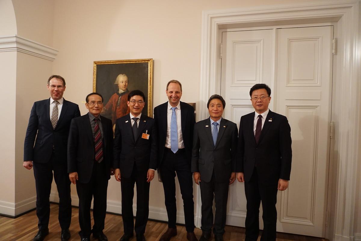Anschließend informierte sich die koreanische Delegation beim Leiter des Büros für Auswärtige Beziehungen der CDU, Herrn Bertil Wenger, über das Wahlergebnis in Deutschland. Er berichtete von den Verhandlungen über die Jamaika-Koalition als auch von aktuellem Meinungsaustausch über das Mehrheitsparteisystem. Am Nachmittag besuchte die Delegation die Zentrale des Tagesspiegels. Der Redakteur Herr Benedikt Voigt und Frau Ronja Ringelstein interviewten die Delegation zu Themen wie der Sicherheitslage in Korea und die Vorbereitung der Olympischen Winterspiele 2018 in PyeongChang. Deutsche Medien sorgen sich um die Sicherheit in Südkorea, aber die südkoreanische Delegation sieht wegen der Spannung auf der Halbinsel keinen Anlass zur Sorge. Die Delegation hofft außerdem, dass beide Länder mit vielleicht zum Beginn der Spiele gemeinsamem Symbol setzen können, jedoch bei aller Freude auf die Winterspiele Sicherheit klar an erste Stelle stehen muss. Sie sieht die Sportpolitik als eine Möglichkeit, die Spannungen auf der Halbinsel zu verringern. Deshalb ist das Ziel für den Besuch in Deutschland, die Sportpolitik weiter auszubauen.