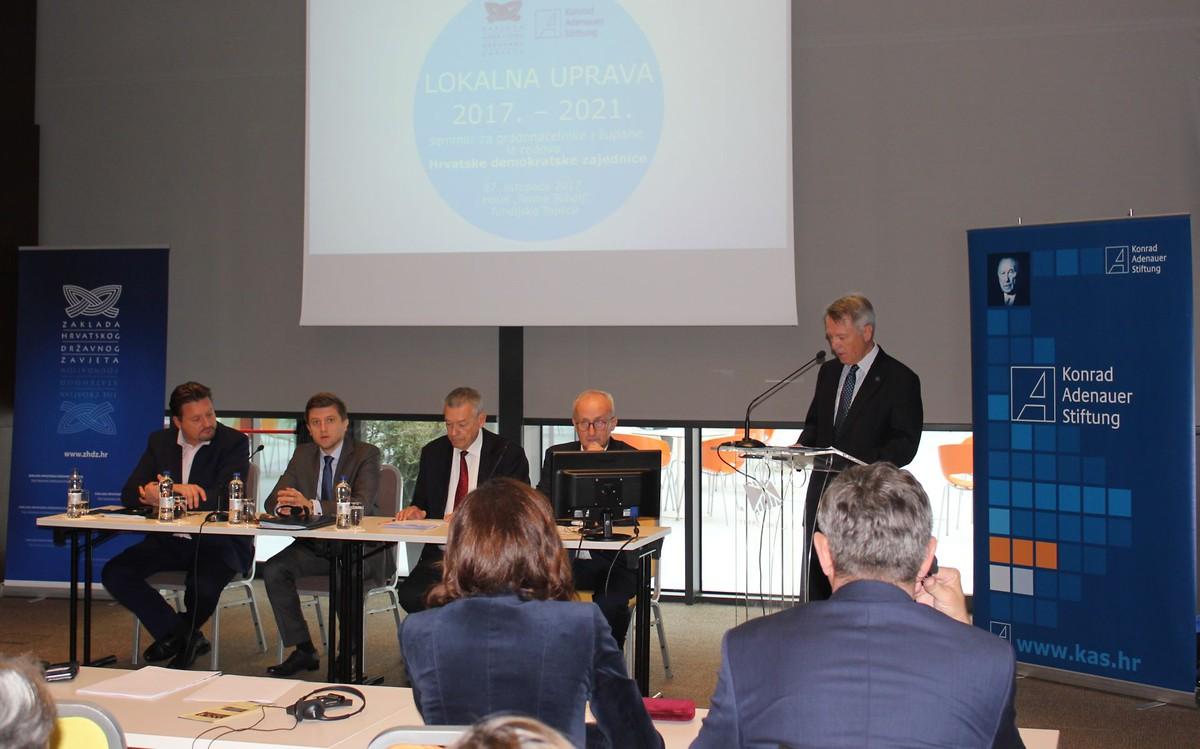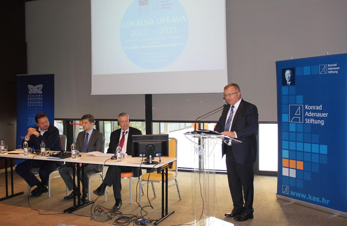 Die Konrad-Adenauer-Stiftung (KAS) veranstaltete mit der HDZ-Stiftung ZHDZ am 27. Oktober 2017 in Tuheljske Toplice einen Bürgermeisterkongress zu den aktuellen kommunalpolitischen Herausforderungen Kroatiens. Im Beisein der kroatischen Minister Dr. Zdravko Marić (Finanzen), Lovro Kuščević (Verwaltung), Tomislav Tolušić (Landwirtschaft) sowie Gabrijela Žalac (Regionale Entwicklung) und des Staatssekretärs für Staatseigentum, Krunoslav Katičić referierte das KAS-Vorstandsmitglied Otto Bernhardt über seine Erfahrungen mit der deutschen kommunalen Selbstverwaltung.