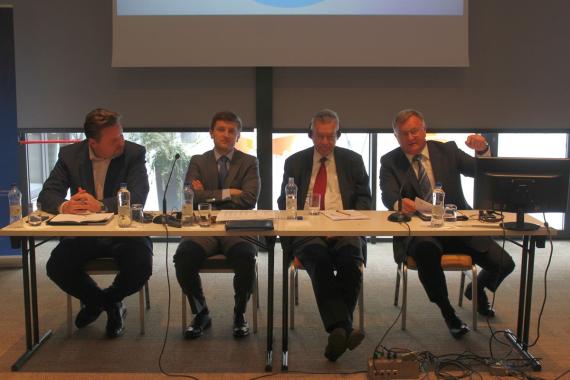 v. l. n. r. Lovro Kuščević (Verwaltungsminister der Republik Kroatien), Dr. Zdravko Marić (Finanzminister der Republik Kroatien), Otto Bernhardt (Vorstandsmitglied der KAS), Srećko Prusina (Vorstandsvorsitzender der HDZ-Stiftung ZHDZ) und Dr. Michael Lange (KAS)