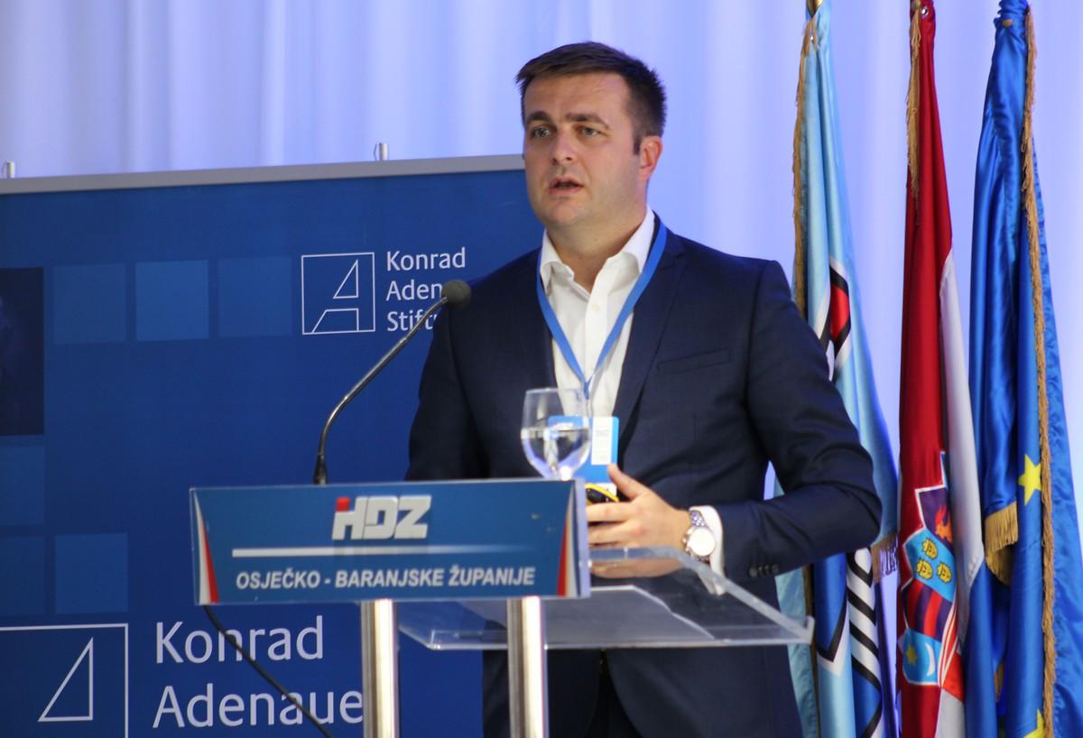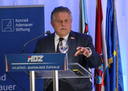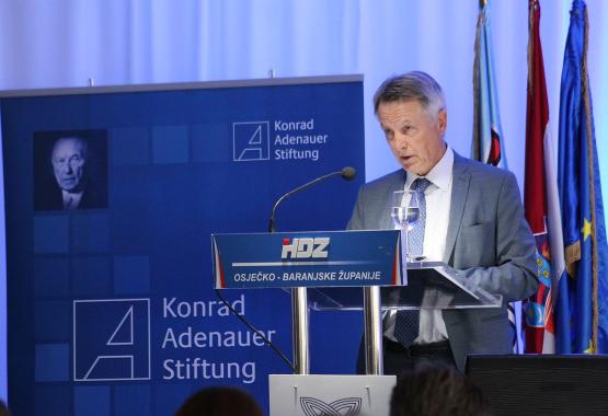 Der Leiter des KAS-Auslandsbüros in Kroatien, Dr. Michael Lange, begrüßte zu Beginn die Teilnehmer der Konferenz und unterstrich, dass die große Anzahl der Anwesenden ein Beweis dafür sei, dass sie sich für die Anziehung von Investitionen nach Kroatien, insbesondere in der Region Slawonien, einsetzen würden. Anschließend bemerkte Dr. Lange, dass die enorme technologische Entwicklung, die traditionellen Geschäftsaktivitäten verändere und manche sogar auch gefährde. Von dieser Entwicklung seien auch die in Kroatien immer noch wichtigen Staatsunternehmen betroffen. In diesem Zusammenhang verwies er auf den 10-Punkte-Handlungsplan, der während des Besuchs des kroatischen Regierungspräsidenten in Berlin veröffentlicht wurde und der eine noch umfassendere Zusammenarbeit zwischen Kroatien und Deutschland fördere.