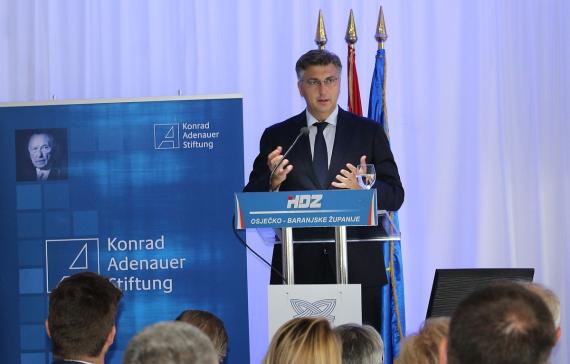 Der Ministerpräsident und HDZ-Parteivorsitzender, Andrej Plenković erläuterte, dass die Politik der kroatischen Regierung auf einem „Dreieck“ beruhe, ohne den man ein Wirtschaftswachstum nicht erzielen könne. Dabei ginge es um die Haushaltskonsolidierung, die strukturellen Reformen und Investitionen. Allen Anwesenden erklärte er, dass die Reformen nicht ausbleiben werden und fügte hinzu, dass es von großer Bedeutung sei, sowohl den kroatischen Bürgern als auch den Abgeordneten im kroatischen Parlament die Reformen zu verdeutlichen. Zugleich stellte er fest, dass die internationalen Kreditratingagenturen Kroatien besserbewerten werden, was sich bei der Anziehung von neuen Investitionen wiederspiegeln müsste. Für ihn sei die Stabilität der Regierung und die damit verbundene Kontinuität der Durchführung von strukturellen Reformen eine unausbleibliche Voraussetzung für ein noch besseres Rating und mehr Investitionen im Land. Zudem hob er die Senkung der Arbeitslosenquote hervor, wie auch eine neue touristische Rekordsaison, wo man die eigenen Pläne durchaus übertroffen habe. Auch wies er auf einen Haushaltsüberschuss von 1,6 Milliarden Kuna in den ersten sechs Monaten 2018 hin und erklärte, dass der Grund dafür eine kluge Verwaltung der öffentlichen Finanzen gewesen sei. Darauffolgend sprach er u.a. über die geplanten Steuer- und Rentenreformen. Am Ende unterstrich er, dass das Hauptziel dieser Regierung sei, günstigere Kreditkonditionen zu erreichen, um eine Refinanzierung alter Schulden durzuführen zu können.