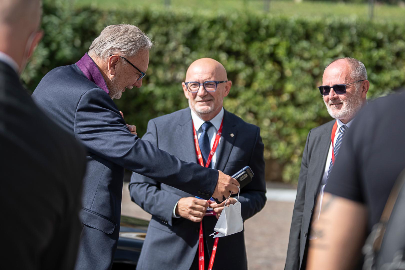 Empfang und Vorgespräch zwischen Dr. Davor Božinović, Innenminister der Republik Kroatien; Alen Ostojić, Direktor des Kroatischen Verbandes der Sicherheitsmanager (HUMS) und Prof. Dr. Vlatko Cvrtila, Dekan der Universität VERN