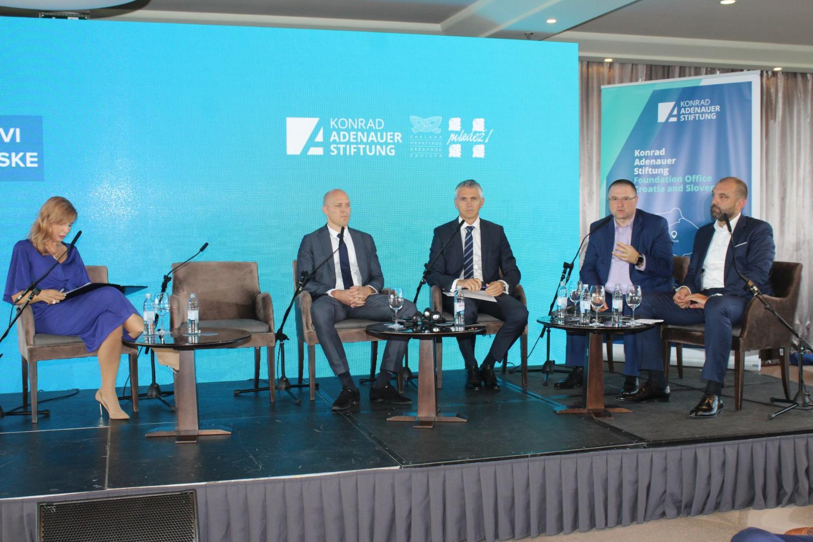 Together with the Croatian Statehood Foundation (ZHDZ) and the Youth of the Croatian Democratic Union (MHDZ), the Konrad-Adenauer-Stiftung organized a discussion on September 11th, 2021 in Zagreb on “Current and future development trends of the Republic of Croatia”. In two panel discussions and with the participation of the Croatian Minister of Labor, Josip Alardoviæ, the Croatian Minister of Education, Prof. Dr. Radovan Fuchs, and Chairman of the European Foundation for Education and former Mayor of the City of Stuttgart, Prof. Dr. Wolfgang Schuster, the trends in the Croatian labor market and education system, the climate and energy goals and the most important elements of the digital transformation were discussed with Croatian experts and company representatives.