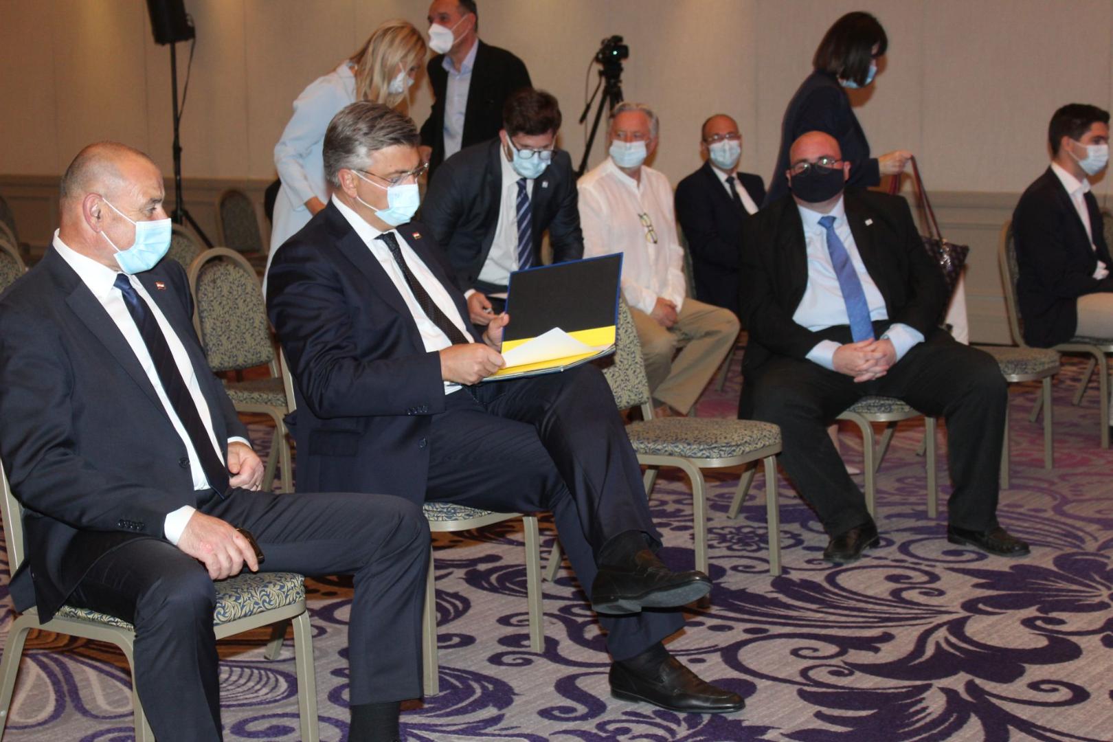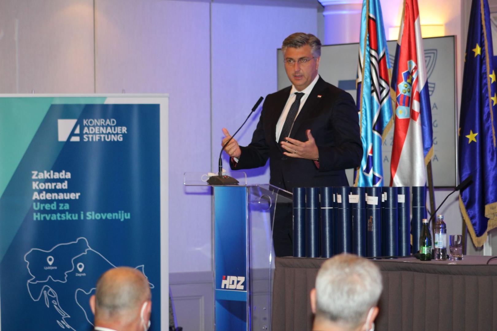 v. l. n. r. Tomo Medved, Minister für Kriegsveteranen der Republik Kroatien; Andrej Plenković, Ministerpräsident der Republik Kroatien und HDZ-Parteivorsitzender und Holger Haibach, Leiter des KAS Auslandsbüros für Kroatien und Slowenien