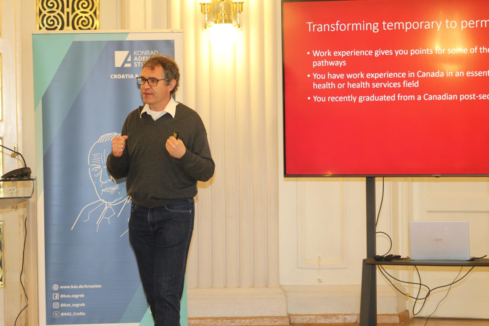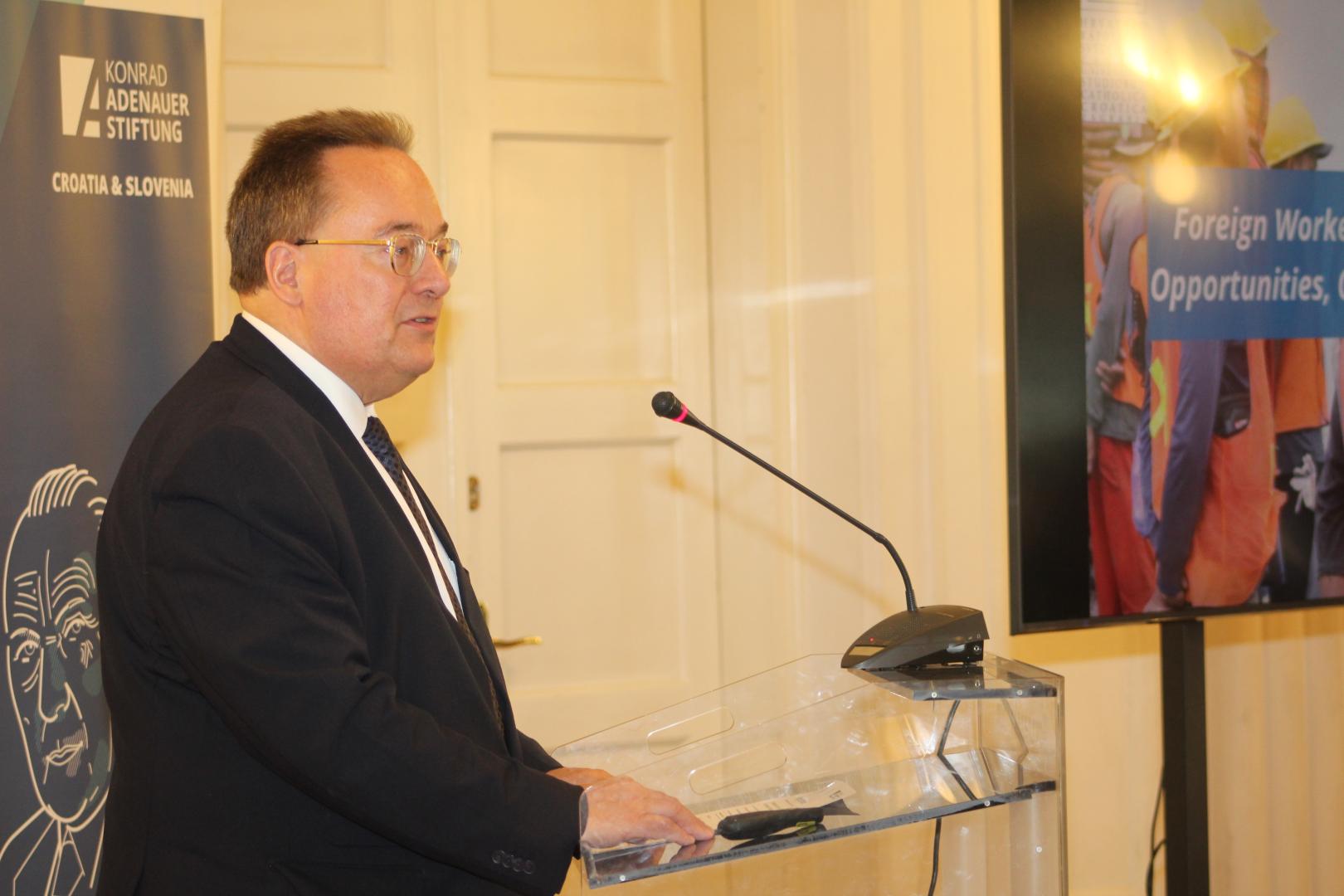 On the first day of his visit, Stockemer participated as a keynote speaker at the conference "Foreign Workers from Asia in Croatia – Opportunities, Challenges, and the Future," organized by KAS in cooperation with the Institute for Migration Research (IMIM). In his speech, he presented successful examples of integration from Canada and provided insights into proven strategies for dealing with foreign labor.