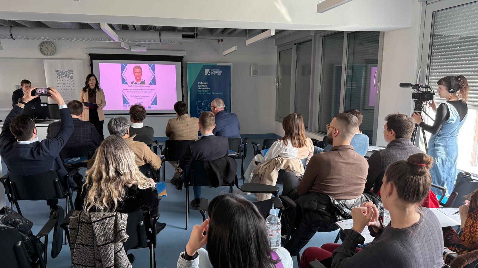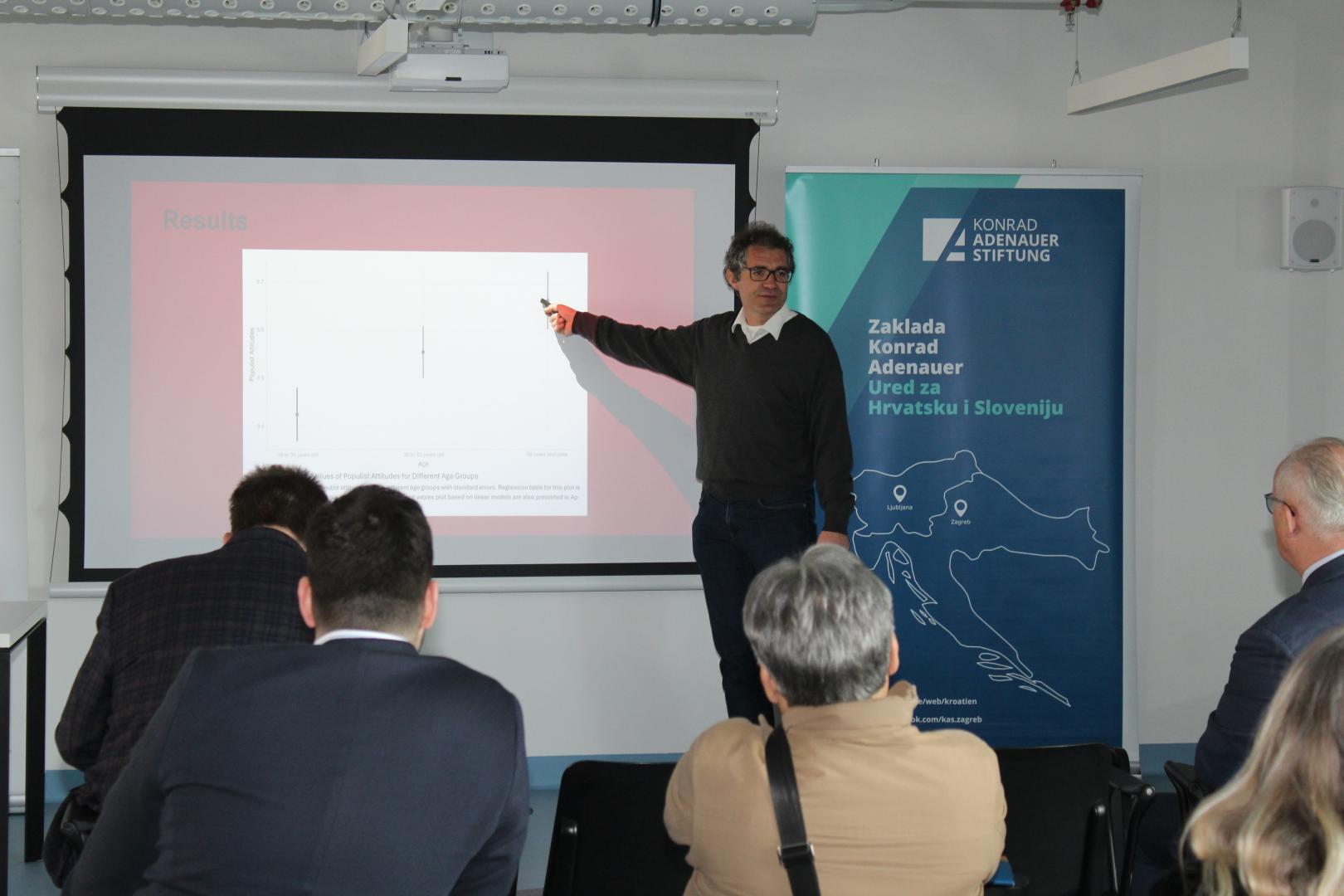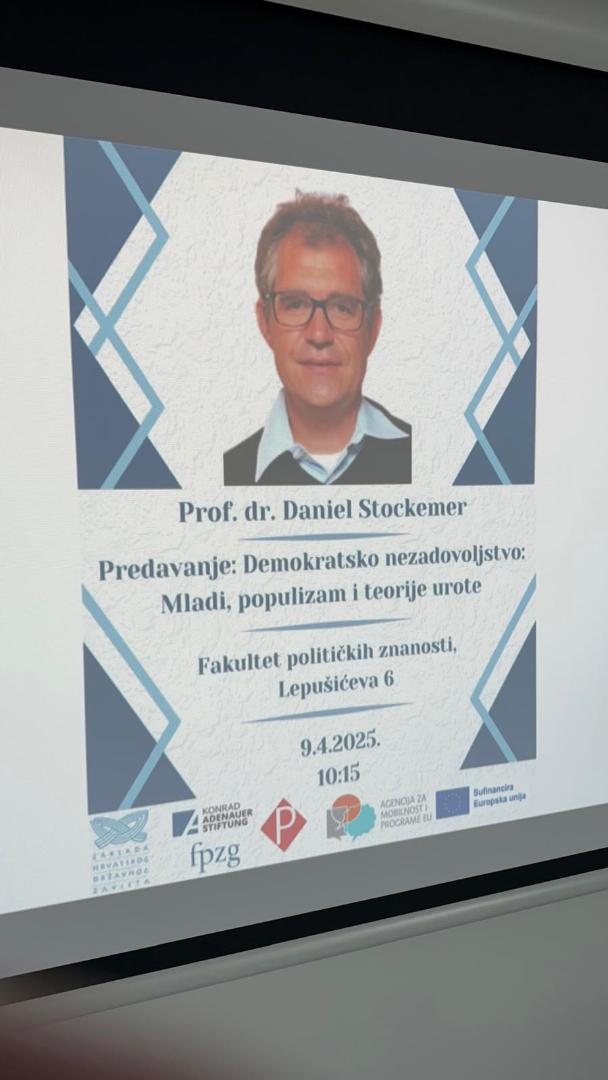 The second day of his visit was dedicated to his main lecture at the Faculty of Political Science at the University of Zagreb. There, Professor Stockemer gave a talk on "Democratic Discontent: Youth, Populism, and Conspiracy Theories." In his lecture, he examined the dangers and societal impacts of populism and emphasized its growing spread across all generations. At the same time, he highlighted significant differences between younger and older populists: while the younger generation shows greater interest in political issues and tends toward more radical actions, older populists are primarily dissatisfied with democracy and show less trust in the government.