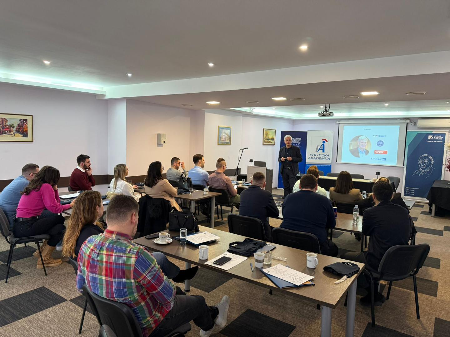 The Konrad Adenauer Foundation, together with the Croatian Statehood Foundation (ZHDZ), organized a workshop for the 4th generation of participants of the "Political Academy PLUS" project from January 17th to 19th, 2025, in Slavonski Brod. During the workshop, representatives from Croatian universities discussed with the participants the importance of political leadership in politics, Human resource management in management, elements of effective organizational management, and the presentation of political content in political communication.